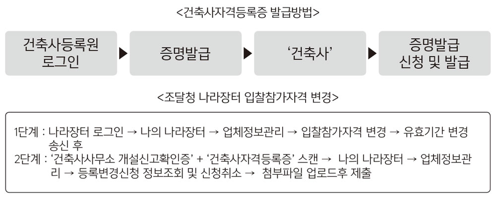 건축사 자격 갱신등록 후, 조달청 나라장터에 건축사자격등록증 제출하세요