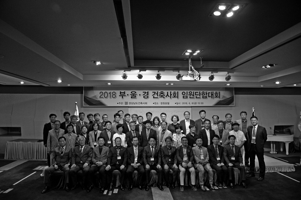 회원간의 친목과 정보공유를 통한 건축사회 발전을 위해 6월 8일 창원호텔 2층 동백홀에서 경상남도건축사회 주관으로 ‘2018 부·울·경 건축사회 임원단합대회’가 개최됐다. 대회는 부산광역시·울산광역시·경상남도건축사회 임원진 56 명이 참석했다.