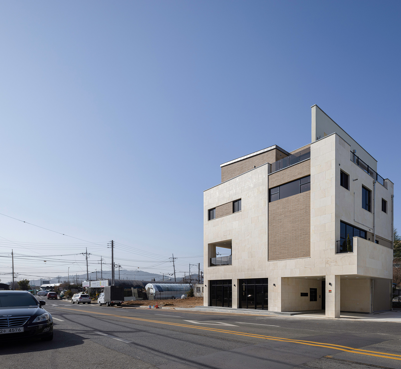 YUYUJAE - A Tranquil House Architect | Kim, Yeeun _ LOG ARCHITECTS Client | LOG Supervisor | Archline.corp Construction | Manbo Jonghapgunseol Location | 206, Jihyeon-gil, Suncheon-si, Jeollanam-do, Korea Program | Multi-family house, Neighbourhood living facility Site area | 321.00㎡ Building area | 184.92㎡ Gross floor area | 592.58㎡ Building to land ratio | 57.61% Floor area ratio | 184.60% Building scope | 4F Structure | RC Exterior finishing | Limestone, Monolongtile, Stuco-Flex Interior finishing | Eco-friendly paint, Wallpaper, Ceramic tile Design period | Dec. 2020 - Aug. 2021 Construction period | Apr. 2022 – Dec. 2022 Photograph | Kim, Sunghee Structural engineer | I-one structure engineering Mechanical engineer | Mio engineering Electrical engineer | Hanul ENG CO., LTD Fire engineer | Hanul ENG CO., LTD |