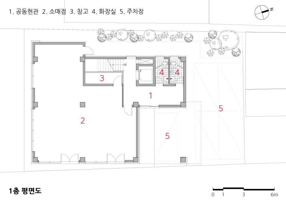 기능은 전형적인 상가주택으로, 학업과 직장으로 인해 흩어져 있던 세 남매가 다시 모여 이곳에 터를 잡게 되었다. 3, 4층에 세 남매가 살 수 있는 다가구를 계획하는 동시에 1, 2층은 수익성을 고려한 최대 면적으로 경제적 안정성을 확보하면서도 동네에서 다양한 기능을 수행할 수 있는 근린생활시설을 배치했다.
