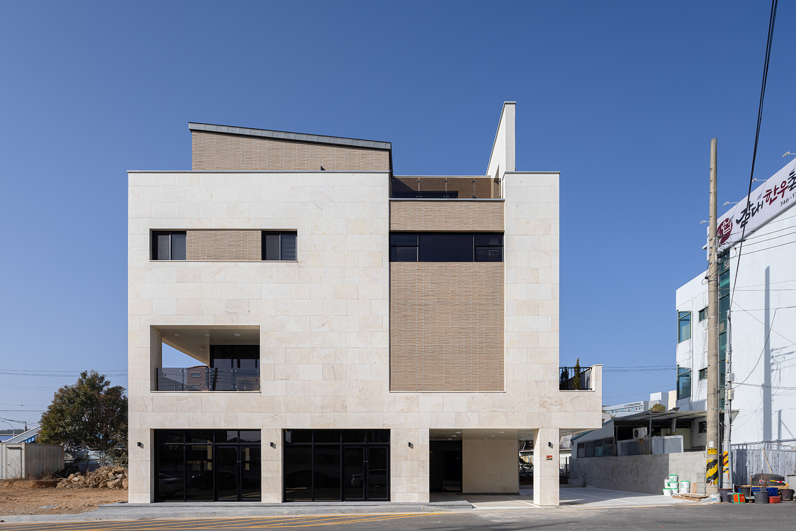 YUYUJAE - A Tranquil House Architect | Kim, Yeeun _ LOG ARCHITECTS Client | LOG Supervisor | Archline.corp Construction | Manbo Jonghapgunseol Location | 206, Jihyeon-gil, Suncheon-si, Jeollanam-do, Korea Program | Multi-family house, Neighbourhood living facility Site area | 321.00㎡ Building area | 184.92㎡ Gross floor area | 592.58㎡ Building to land ratio | 57.61% Floor area ratio | 184.60% Building scope | 4F Structure | RC Exterior finishing | Limestone, Monolongtile, Stuco-Flex Interior finishing | Eco-friendly paint, Wallpaper, Ceramic tile Design period | Dec. 2020 - Aug. 2021 Construction period | Apr. 2022 – Dec. 2022 Photograph | Kim, Sunghee Structural engineer | I-one structure engineering Mechanical engineer | Mio engineering Electrical engineer | Hanul ENG CO., LTD Fire engineer | Hanul ENG CO., LTD |