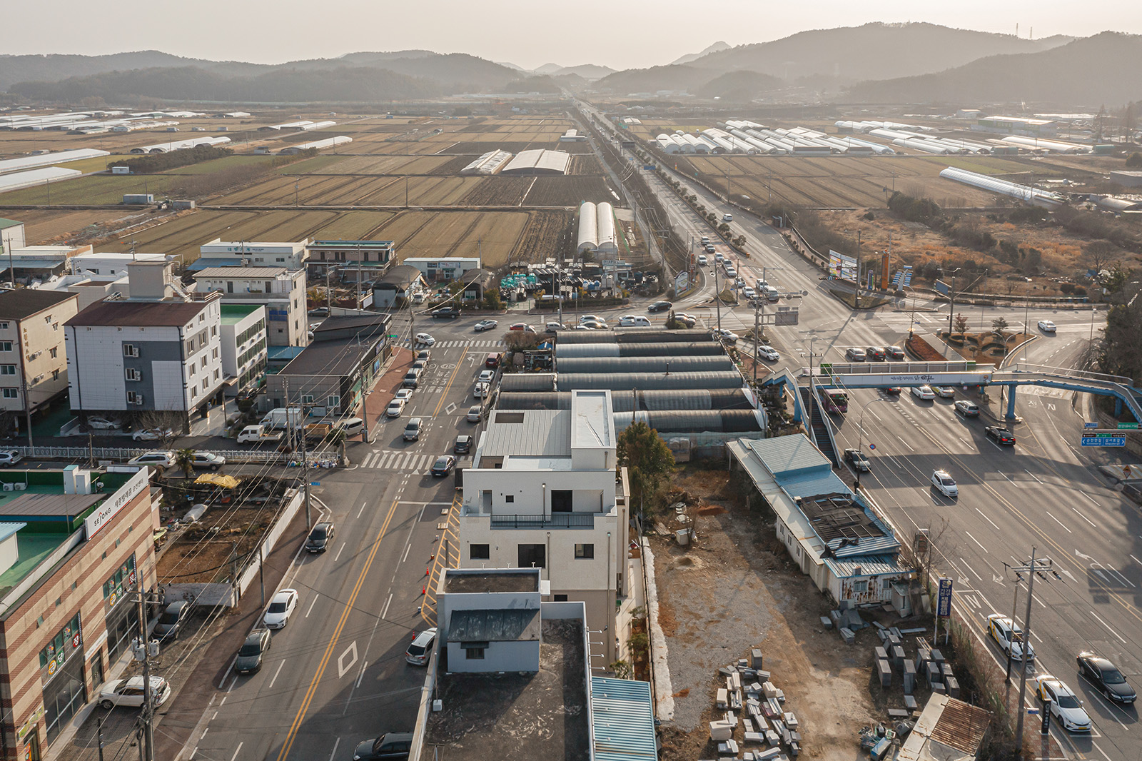 Suncheon is a huge garden with beautiful nature. It has Suncheonman Bay of migratory birds, vast golden rice paddies and fields, and the Buddhist Mountain monastery named Seonamsa Temple. As a city surrounded by natural landscape, the local residents of Suncheon meet huge yards and gardens as soon as they take a step from the front door. The planning began with exploring the backgrounds at different levels in consideration of the city’s characteristics. Especially, the town where YUYUJAE is located is on the edge of city, and it has urban context as a border between urban and rural areas. With contrasting urban and rural views and contrasting density boundaries, the town captures rural and urban visual backgrounds.