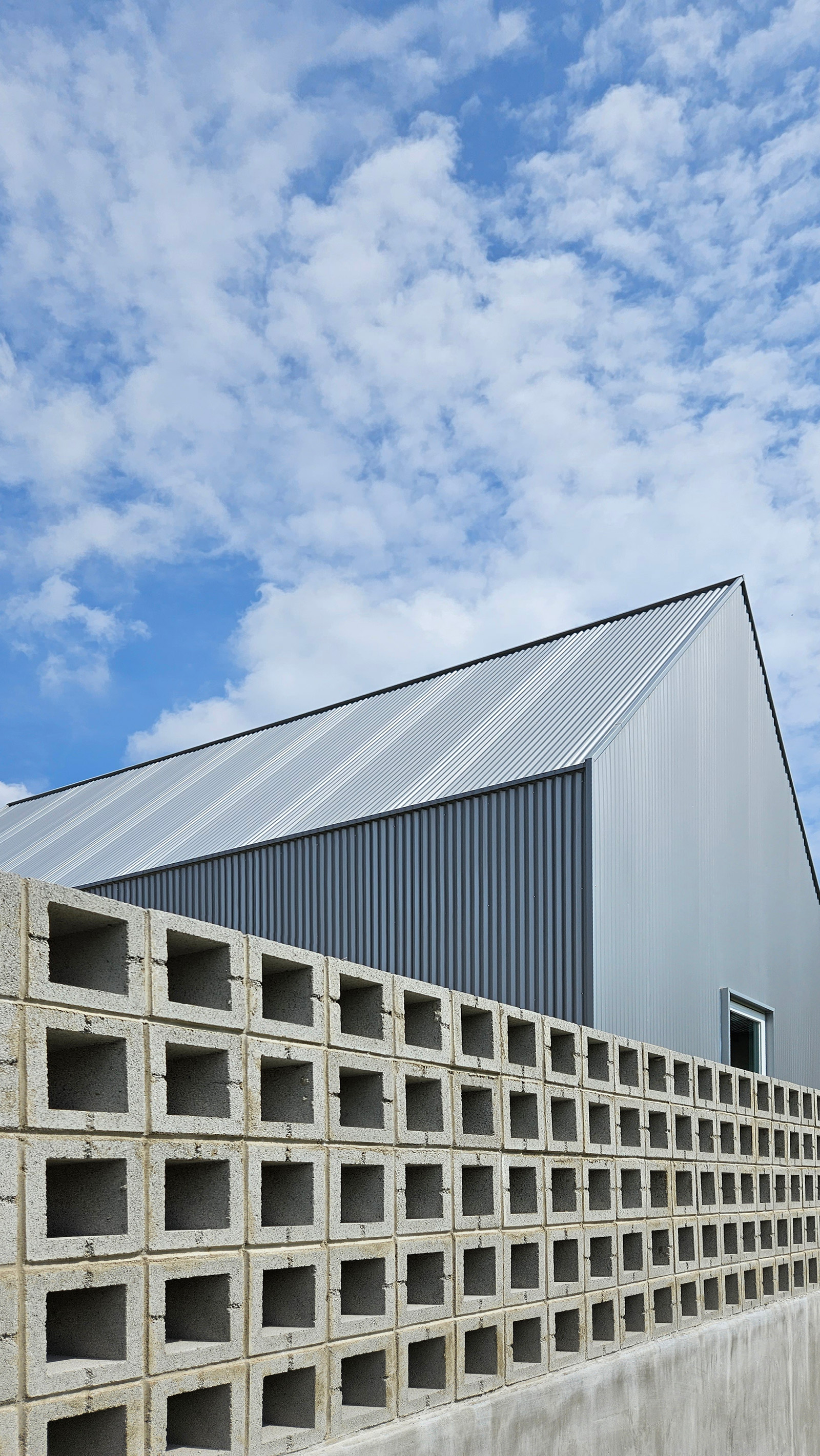 단순한 건축물의 볼륨은 기존 건축이 가지고 있던 박공지붕의 간결함을 더욱 빛나게 만들었다. 외부는 말 그대로 언제나 빛날 수 있는 재료인 골강판을 사용하기로 했다. 골강판의 경우 호불호가 나누어지다 보니, 제안하는 것도 결정하는 것도 고민이 있었지만, 기꺼이 도전해 보았다.