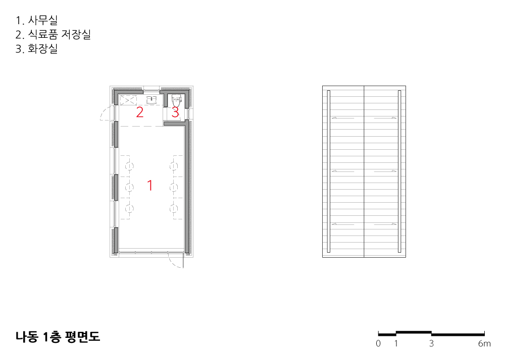 마지막으로 부부공간은 2층으로 계획되어 공용 공간과 사적 공간으로 구분된다. 언니공간에서 바로 연결되는 1층에 주방, 거실 등 공용 공간이 구성되며 부부의 사적인 생활공간은 2층에 배치되었고, 주 생활공간 뒤편으로 생기는 테라스는 부부만의 사적인 외부 공간을 이루고 있다.