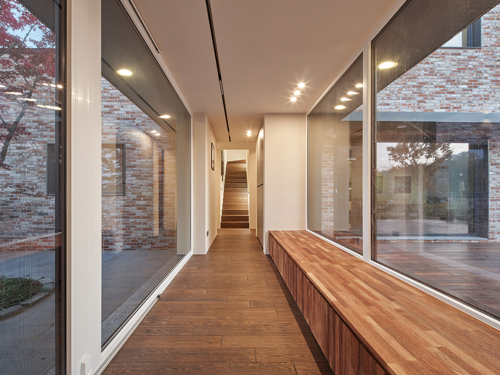 Garden house ‘Da-Jeong’ Architect | Bang, Jaewoong / Kwon, Hyukchul / Jang, GeunYong _ RAUM Architecture Client | Kim, Youngjoo Supervisor | RAUM Architecture Construction | Baum Haus Design intention realization | RAUM Architecture Location | Dogok-ri, Yangpyeong-eup, Yangpyeong-gun, Gyeonggi-do Korea Program | House, Office Site area | 874.00㎡ Building area | 174.03㎡ Gross floor area | 228.06㎡ Building to land ratio | 19.91% Floor area ratio | 26.09% Building scope | 2F Structure | RC Exterior finishing | Brick tile, Metal Interior finishing | High density fiberboard Design period | Nov. 2020 – Mar. 2021 Construction period | Jun. 2021 – Apr. 2022 Photograph | Lee, Hanul Structural engineer | Eden Structure Mechanical engineer | Kodam Engineering Electrical engineer | Kodam Engineering Fire engineer | Kodam Engineering |