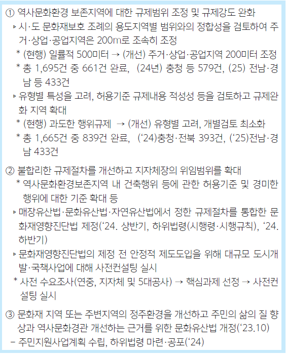 Q 문화유산 보호를 위해 여러 규제가 생겨나 이를 개선하기 위한 여러 정책을 추진 중에 있는 것으로 알고 있습니다. 무엇이 있는지요.