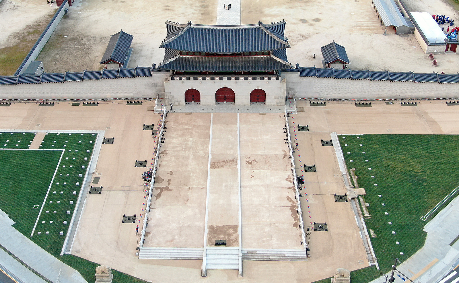 발굴 조사 결과, 월대 전체 규모는 남북 길이 48.7미터, 동서 폭 29.7미터. 광화문 중앙문과 이어지는 너비 약 7미터 어도의 자취가 확인됐습니다. 2018년부터 월대 복원 사업을 시작해 작년 10월 공사를 완료했습니다.