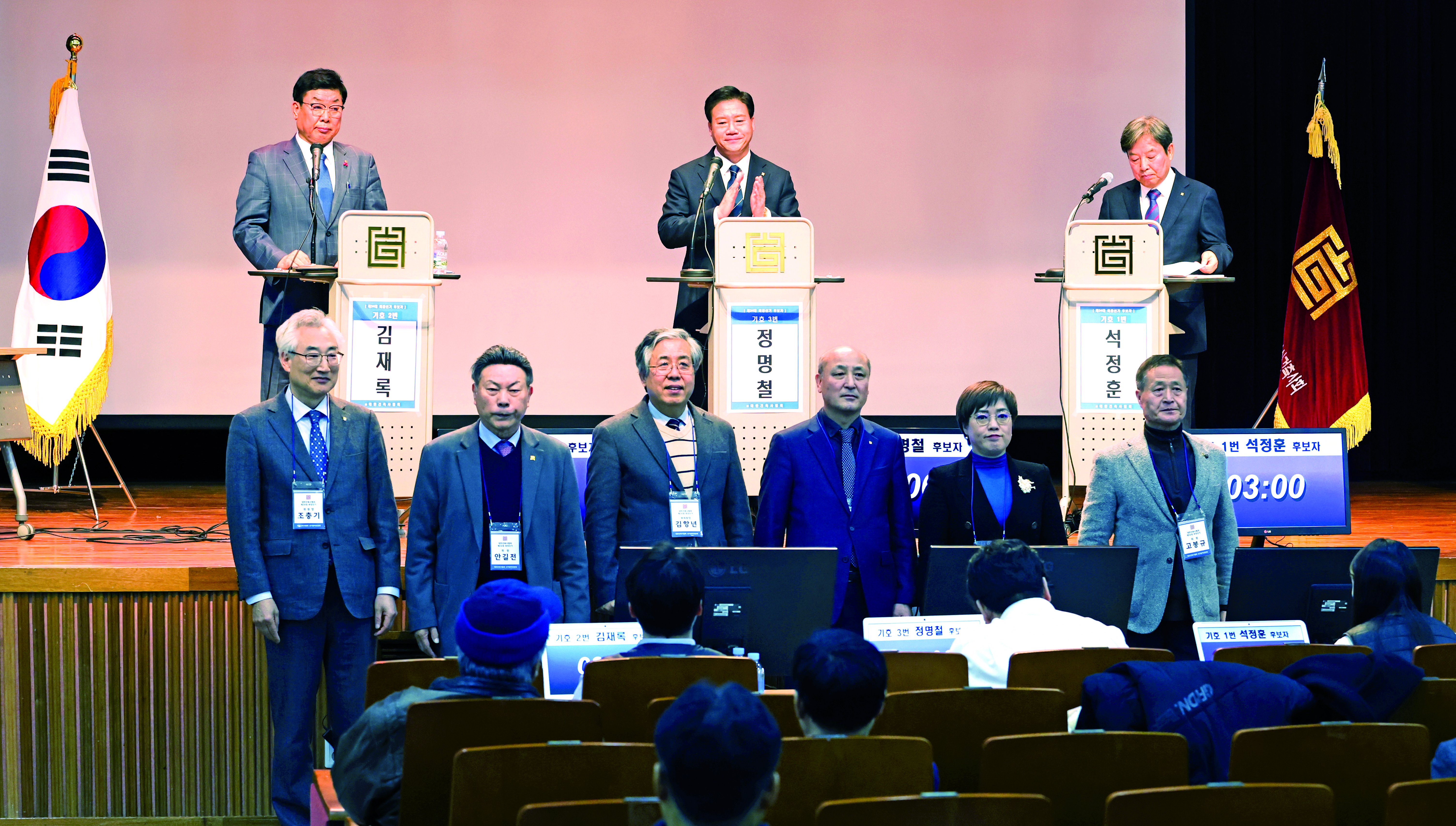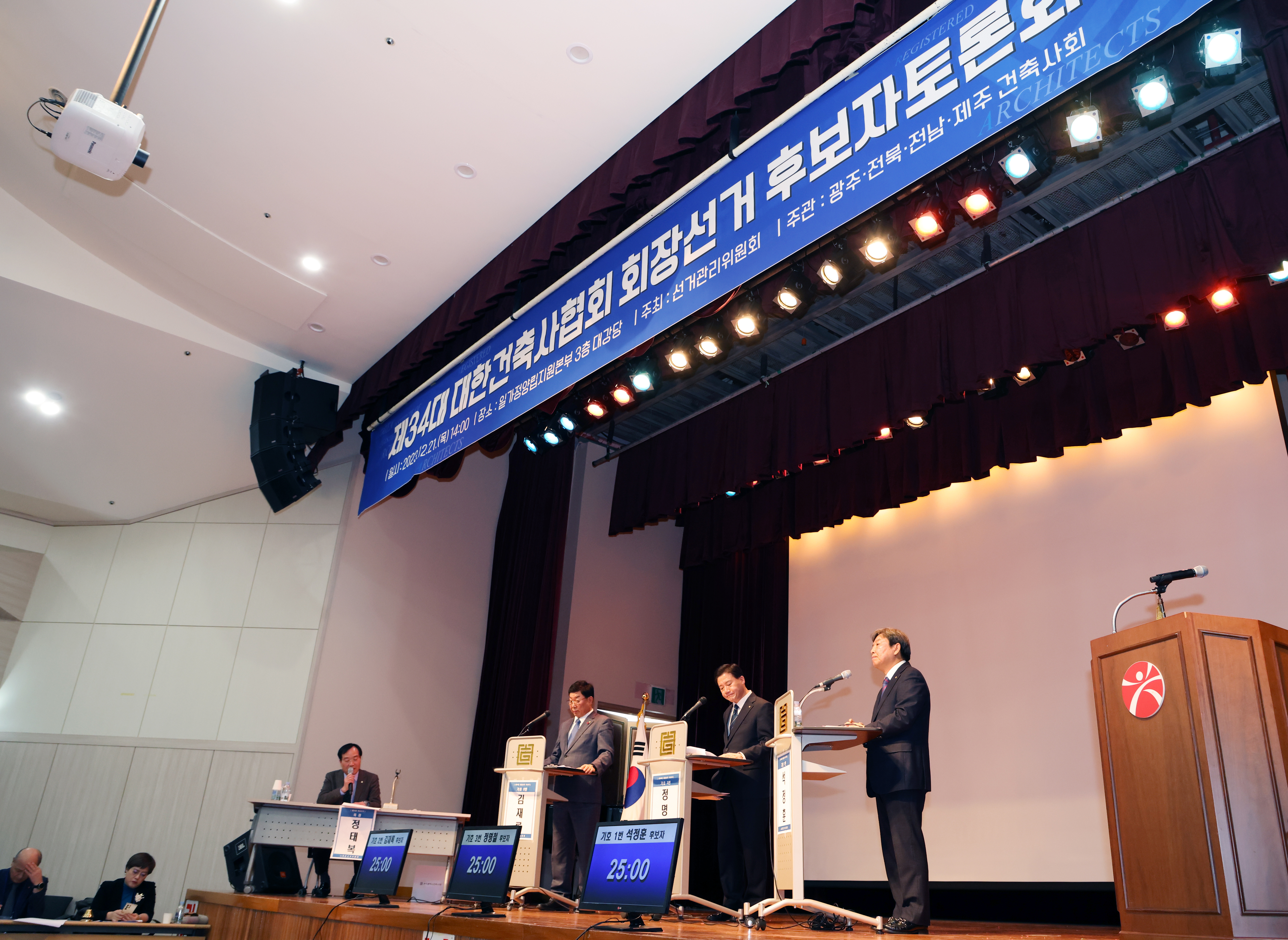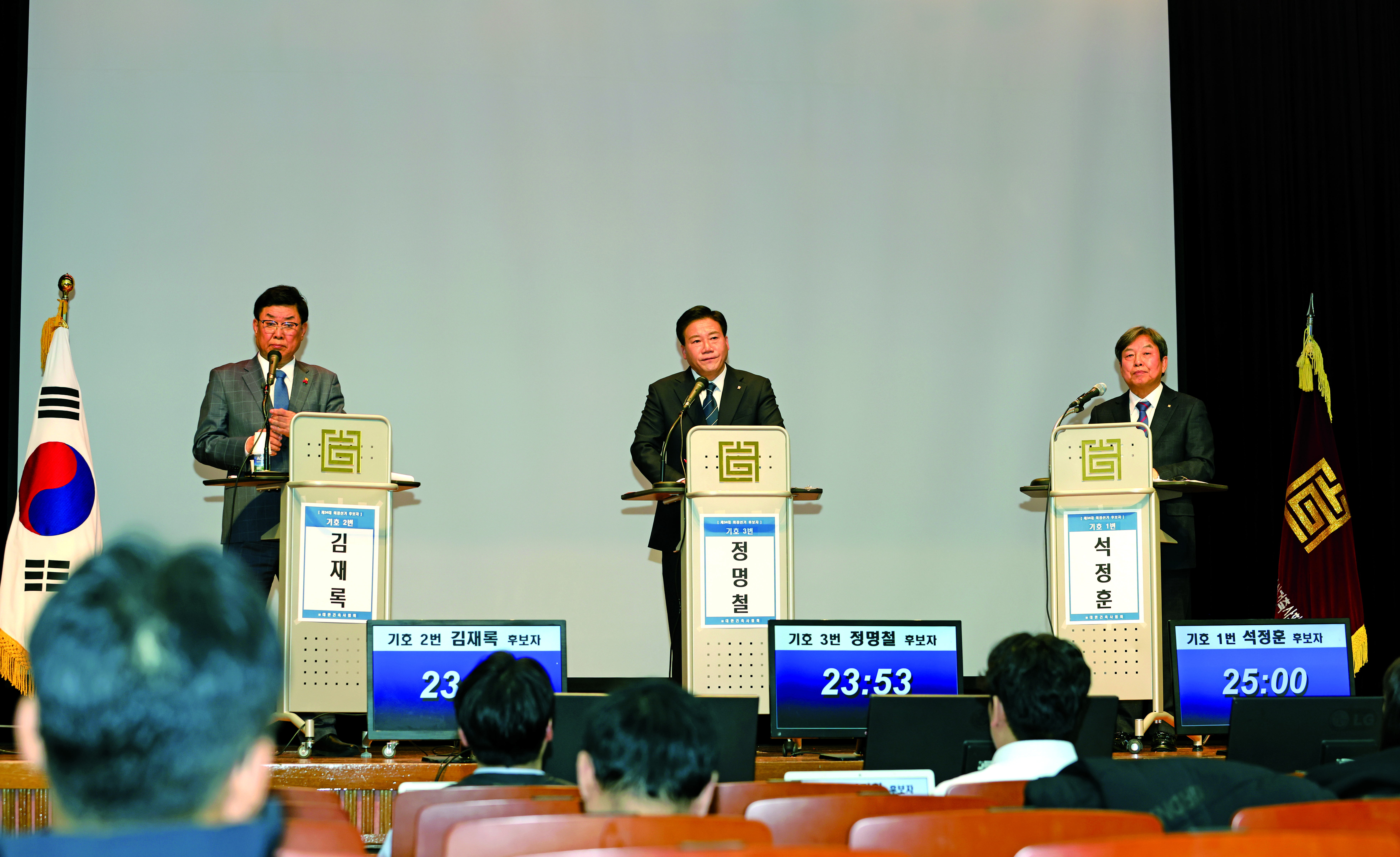 2024년 1월 17일∼18일 제34대 회장선거 앞두고 석정훈, 김재록, 정명철 후보 토론 의무가입 시대 ‘비전·정책’ 설명, 답변