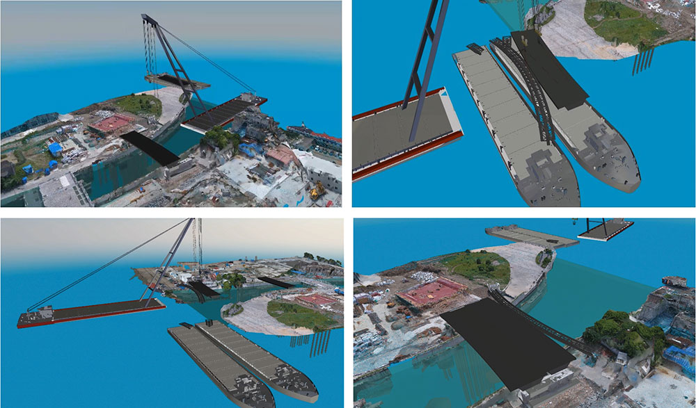 양푸강변 황푸지구의 교량 건설 프로젝트의 경우, 프리캐스트 세그먼트 (PC공법)공법을 활용하여, 공장에서 자체적으로 제작한 교량의 상판을 가져와 어떻게 설치할 것인가에 대 한 가상의 시뮬레이션(VR, AR)을 시각화 시스템을 통해 보여준다. 실제로 교량을 설치할 때 발생할 수 있는 시공상의 문제점을 확인해 문제점을 미리 발견할 수 있다.