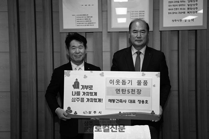 경상북도건축사회 상주지역건축사회 소속 정용호 건축사(주. 해동 건축사사무소)가 지난 12월 22일 상주시에 연탄 5천 장을 기탁했다. 정용호 건축사는 “한파가 시작돼 기온이 급격히 낮아지는 상황에서 조금이나마 도움이 되고자 한다”며 “겨울철 난방이 취약한 가구에 잘 전달되길 바란다”고 전했다. 정용호 건축사는 앞선 2021년과 2022년 상주시장학회에 500만 원을 기탁한 바 있다.