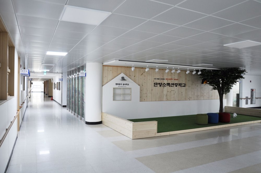 학교내부는 학생들 중심으로 계획됐다. 학생들의 창의성과 인성의 교육을 담당하는 도서관을 학교의 중심에 배치하여 접근성을 높였다. 이용밀도가 높은 중심공간에는 채광 및 환기를 고려한 넓은 계단을 배치하여 학생들의 모임장소로 쓰이게끔 설계했다. 학생들은 계단에서 앉아 친구들과 수다 떨기도 하며, 휴식을 취하기도 한다. 계단은 학교의 커뮤니티 베이스로 학생들간의 다양한 이용과 소통이 가장 활발히 일어나는 공간이 될 것이다.