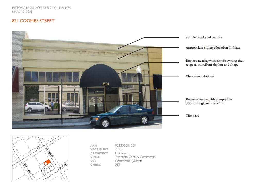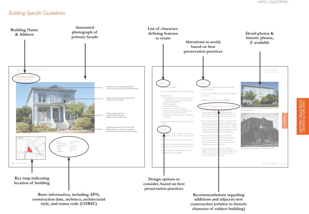 젠트리피케이션 현상과 공존하기 위해서는 시작부터 전략적 접근과 조직이 필요하다. 우선 해당 지역에 대한 철저한 데이터베이스화가 필요하다. 기존 도심 공간의 도로망 체계뿐만 아니라 필지 현황과 건축적 형태와 구성에 대한 전수조사가 필요하며, 이를 유형과 코드로 기록 정리해야 한다. 불가능할 것 같더라도 그런 장소적 가치가 있다면 해야 한다. 대상 범위를 축소하고 전면적인 전수조사를 통해 기록하고 작성하면 된다. 현재 우리나라의 도시계획은 관련 지구단위 조항이나 규정, 지침으로 되어 있으나 너무 포괄적이고 세밀하지 못하다. 지구단위 지침 구성 시 건축적 접근이 전무한 것도 하나의 이유다. 예를 들면 와인으로 유명한 미국 나파밸리의 경우 다운타운에 관한 세세한 전수조사를 통해 시대 변화에 따른 공간 변화의 방향성을 유도하기 위한 세부 지침이 마련되어 있다. <사진 3>