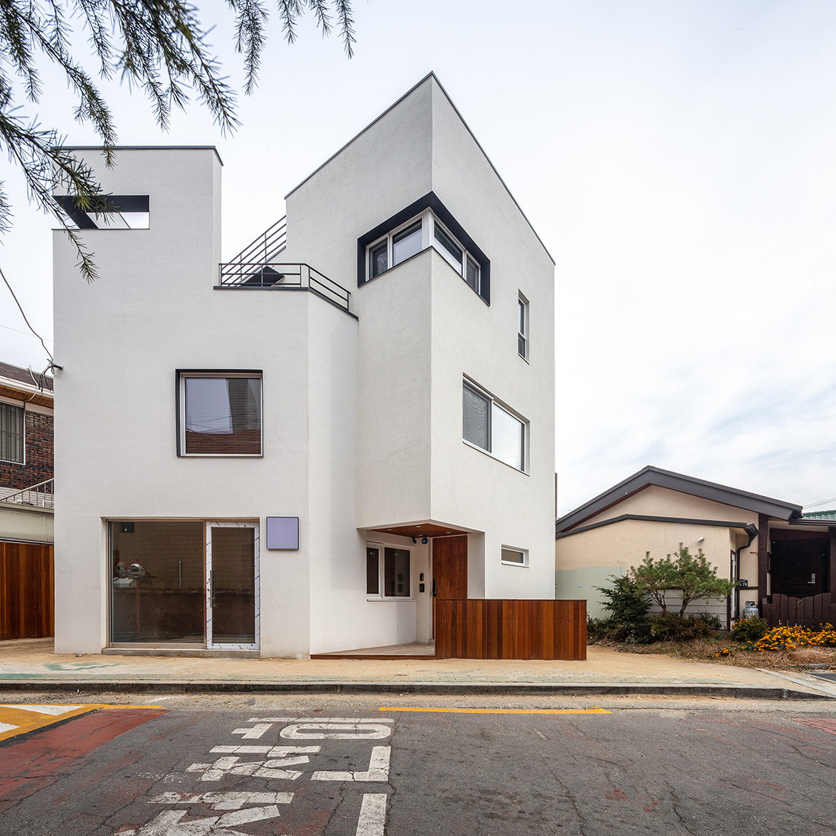 Welcome Rain House Architect | Lee, Changho _ The S.O.L Architects Client | Kim, Jongwoo Supervisor | Lim, Jaehoon _ Woori Architects Construction | Direct construction Project team | Jeong, Eunji Design intention realization | The S.O.L Architects Location | 55, Myeongdeok-ro 52-gil, Nam-gu, Daegu, Korea Program | Single Family House Site area | 129.00㎡ Building area | 59.98㎡ Gross floor area | 152.73㎡ Building to land ratio | 46.50% Floor area ratio | 118.40% Building scope | 3F Structure | RC Exterior finishing | Dryvit Interior finishing | Wallpaper, Solid wood floor Design period | Nov. 2017 - Mar. 2018 Construction period | Apr. 2018 - Nov. 2018 Photograph | Yoon, Donggyu Structural engineer | OS Structure Engineering Mechanical engineer | IDO Eng Electrical engineer | Sinla Eng Fire engineer | Sinla Eng |