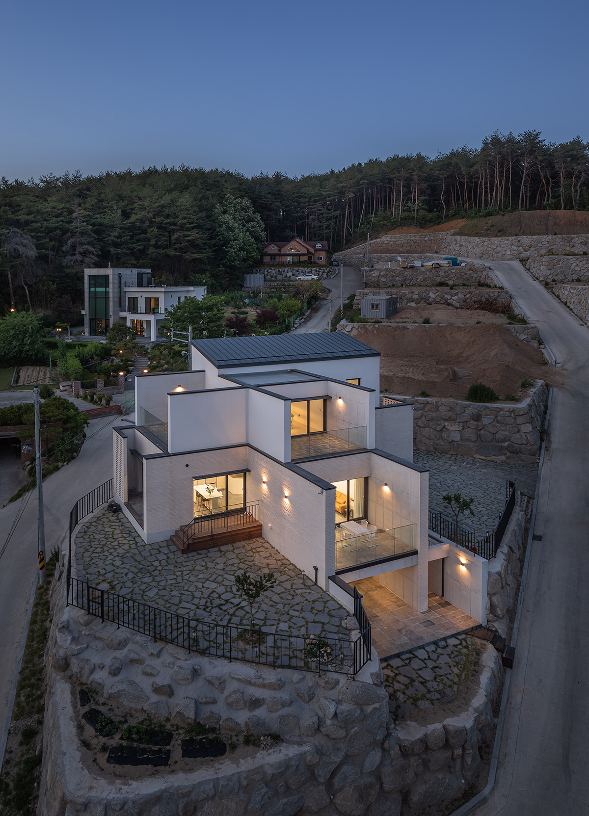 도시의 주변에 자연 지형적 경관을 가진 곳곳이 다도해의 섬처럼 개발되고 있다. 연속적이고 흐름으로써 지형을 다루는 것이 아니라 분절되고 획일화된 택지에서 하나의 건축부지를 매입해서 주택 설계를 의뢰할 때 참으로 곤혹스럽다. 대지를 치유하는 방법을 찾거나 개선하여 다시 살만한 장소로 만드는 건축적 간섭을 해야 하기 때문이다.