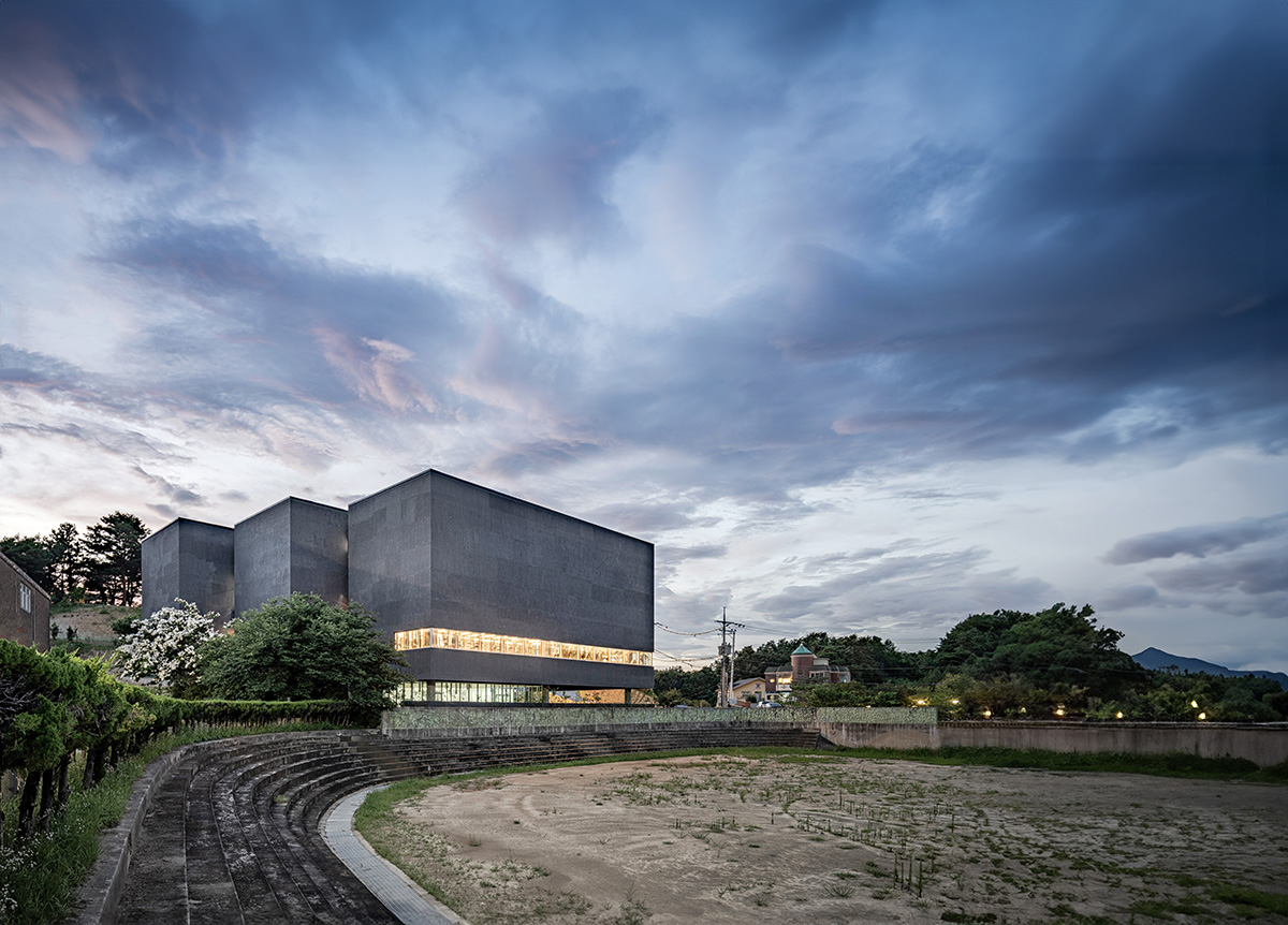 비정형의 대지경계선 내에서 최적의 건축 가능 영역을 확보하기 위해 좌측 입면을 세 개의 매스로 분절하고, 우측 입면을 두 개의 매스로 분절했다. 학교 체육관에서 바라보는 좌측 입면의 형상은 거대한 위압감보다는 리듬감 있는 모습으로 보이도록 했다.