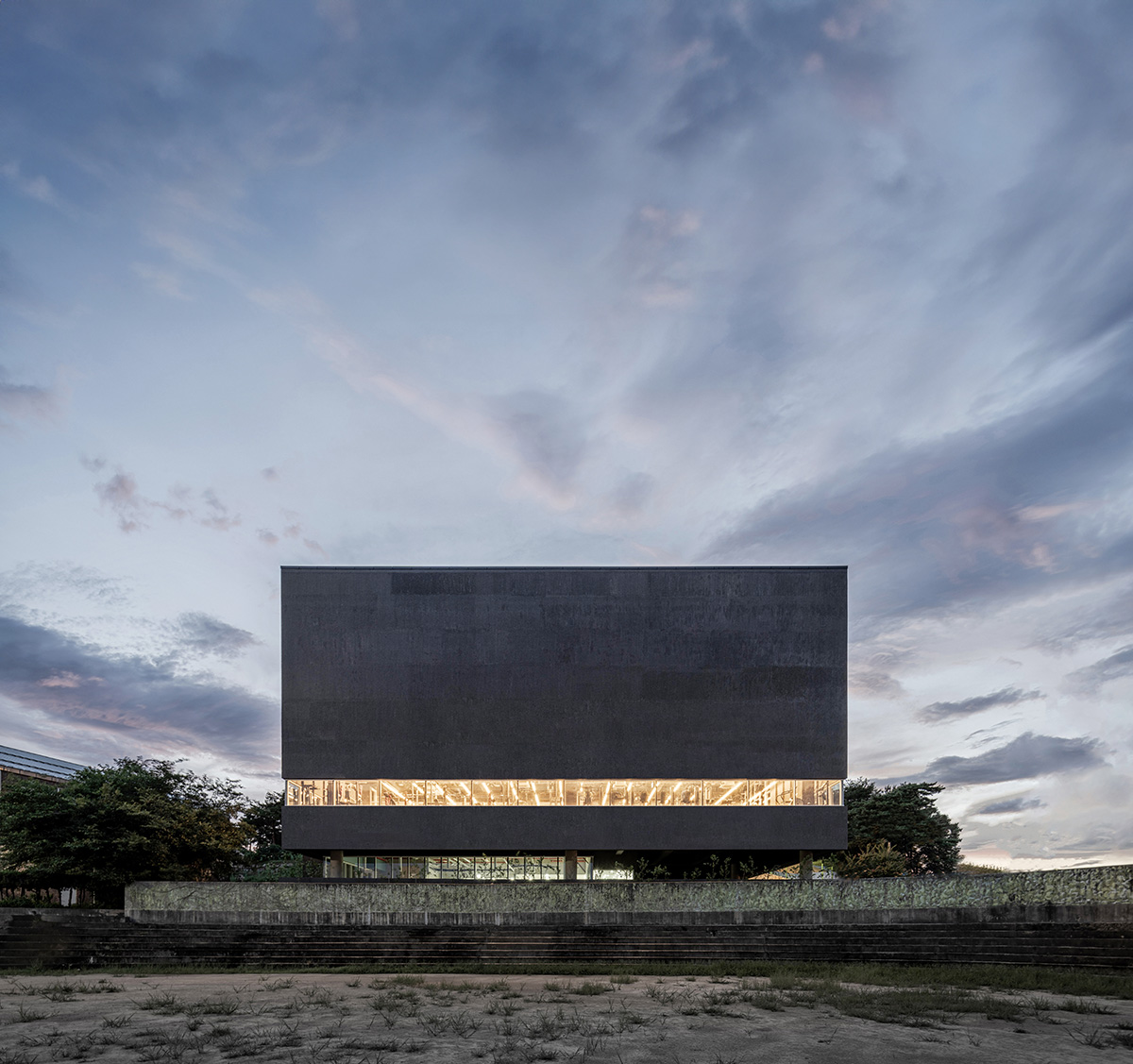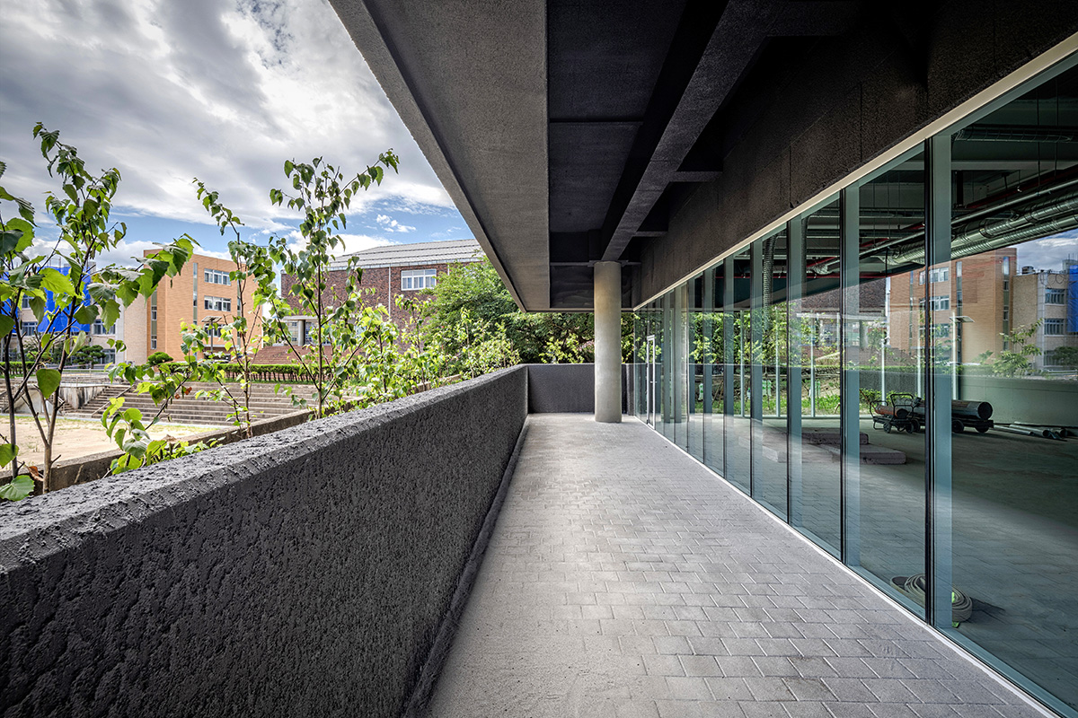 건물 전면 학교 운동장과의 경계를 형성하는 운동장 스탠드 담장과 새로 만들어진 담장 사이 공간에는 교목 식재를 심어 담장 위까지 가지와 잎새가 올라오도록 했다. 이를 통해 주로 의자에 앉아 있는 외부공간 이용자는 추가로 운동장과의 시선 차폐가 가능하며, 마치 한 폭의 넓은 그림처럼 하늘과 자연, 그리고 건물이 자연스럽게 조화되는 풍경을 바라볼 수 있다. 반대 방향인 학교에서 바라보는 건물의 모습은 기존의 스탠드 담장과 조화롭게 보이도록 했다.