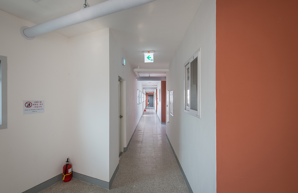 경관적으로는 조천교 주변의 도시재생 지역과 어우러질 수 있도록 매스를 분절하고, 옥외 테라스 여백을 주어 5층 규모의 스케일이 주변 단독주택 부지에 부담이 되지 않도록 의도했다. 외장재료는 컬러 BIPV 외에 화이트징크, 청고벽돌을 사용했다.