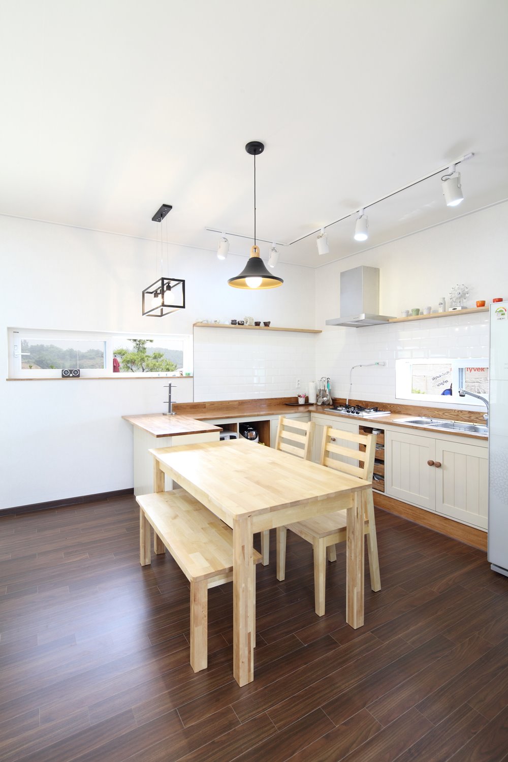 GOGO House Architect | Hwang, Younghwan _ Doppelhaus Design Group Client | Lee, Ganghwi Supervisor | Hwang, Younghwan _ Doppelhaus Design Group Construction | Noh, Jongsik Project team | Kim, Taeseop / Hwang, Kyungho Location | 41-25, Geumgok 1-gil, Chungju-si, Chungcheongbuk-do, Korea Program | Detached house Site area | 360.00㎡ Building area | 71.67㎡ Gross floor area | 96.78㎡ Building to land ratio | 19.91% Floor area ratio | 26.88% Building scope | 2F Structure | Light tree structure Exterior finishing | Stucco, Brick tile Interior finishing | Ondol(korea floor heating system) floor, Wall paper Design period | May. 2013 ~ Dec. 2013 Construction period | Dec. 2013 ~ May. 2014 Photograph | Byun, Jongsuk Structural engineer | Lee, Taekwon _ Shinhwa engineering Mechanical·Electrical·Fire engineer | Hong, Giyeong _ Jungchaneng |