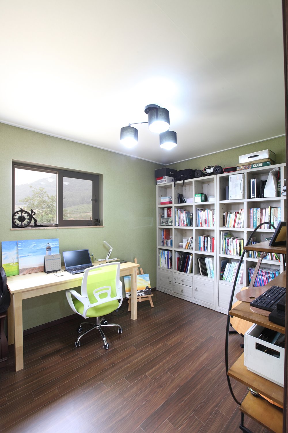 1층은 거실과 주방, 부부침실 2층은 가족실, 서재, 아이방을 구성했다. 공용공간과 개인공간의 영역성을 확보하고 기능상 공유가 가능한 공간은 쇼파, 식탁, 장식장의 배치를 통하여 가번이 가능하도록 계획 했다.