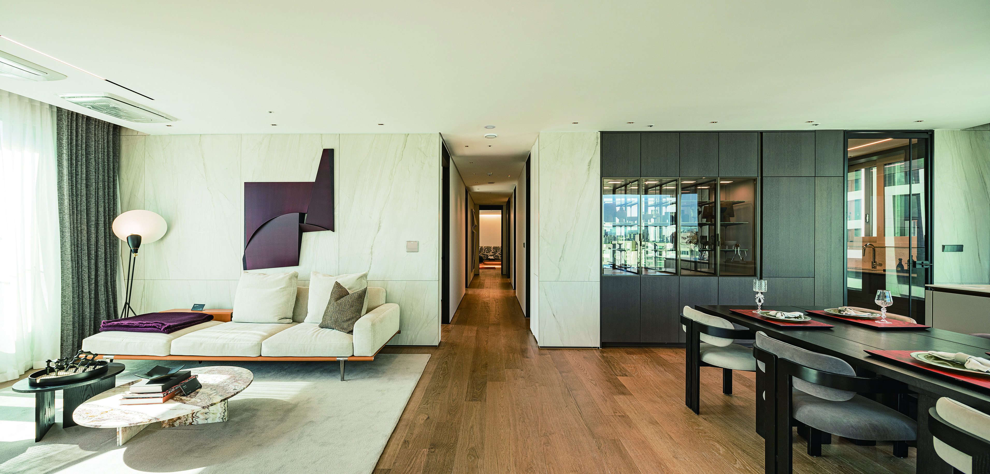 이 프로젝트는 SHINYOUNG의 고급 주거 브랜드 BRIGHTEN의 핵심 철학인 균형 잡힌 공간, 아름다운 순간, 더 나은 생활방식을 보여주는 공간이다. 빛에서 영감을 받은 유닛 인테리어 컨셉트는 프리즘이다. 레이아웃은 가능한 많은 빛을 받아들이는 세 면이 열린 LDK(거실-식사공간-주방이 하나로 이어지도록 설계해 통일감과 개방감을 높인 구조) 구조다. 창문은 프리즘 역할을 하며, 프리즘을 통과하는 빛이 다양한 색 스펙트럼으로 분리되는 것처럼, 각 타입마다 다른 포인트 색상을 적용하여 각 타입에 색상 정체성을 부여한다. 프리즘 컨셉트로 구성된 주거 공간은 고객들이 BRIGHTEN의 브랜드 슬로건인 'Brighten Your Life'를 은유적으로 느낄 수 있게 한다.