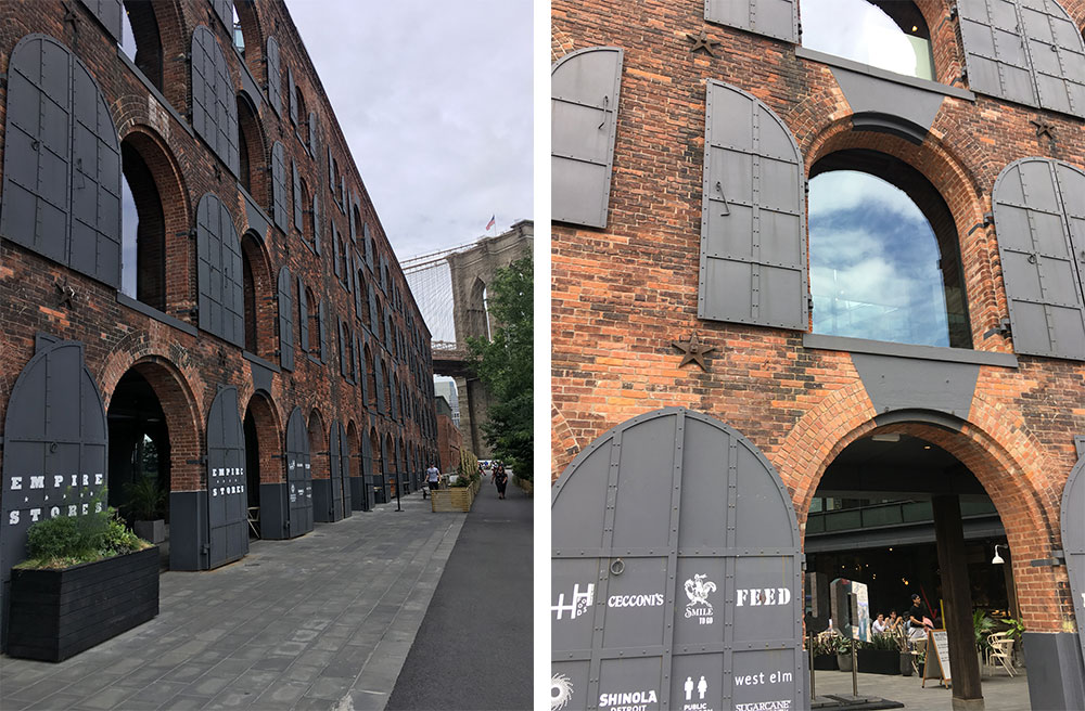 이스트 강을 넘어 브루클린 덤보(Dumbo) 지역으로 향한다. 2~3년 전까지만 해도 이 지역은 흑인 빈민가여서 일반인 들의 보행조차 힘들었다고 한다. 하지만 지금은 공원이 조성되고 리모델링이 이 루어져 관광객이 많이 찾는 명소가 됐 다. 이 지역 150년 이상 커피저장창고로 사용되었던 건물을 쇼핑몰로 리모델링 한 엠파이어 스토어(Empire Store)도 방 문했다