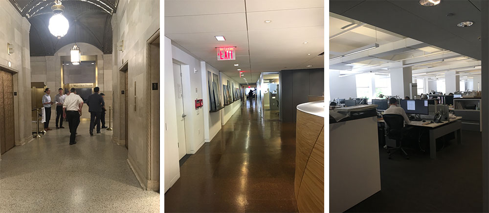 우리의 일정 중 또 하나의 중요한 일정이 외국 건축사사무소 방문이었다. 일정에 있던 ‘해안 건축 미국법인’은 방문 30분 전에 가이드에게 공개가 불가능하다고 통보해왔다. 하지만 아 무도 개의치 않았다. 콘 페더슨 폭스(Kohn Pedersen Fox, KPF) 방문이 예정되어 있었기 때 문이다. 현지 KPF에 근무하는 한국인 건축사의 안내로 사무실 내부로 들어갔다. 400명가 량이 근무하는 사무실에는 효율적으로 회의실과 휴게공간 등이 배치되어 있었고, 모형실 에서는 3~4대의 3D프린터가 쉴 새 없이 움직였다.