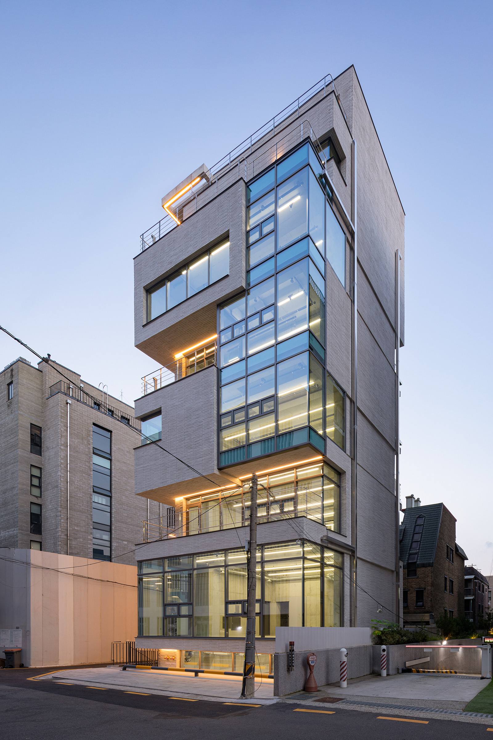 GRACE 573 Architect | Kim, Wonyoung · Park, Namkyu · Lee, Jonghee _ OMM Architects Client | Yeo, Inju / Lee, Gangwon / Lee, Sieun Supervisor | OMM Architects Construction | Bau C&C Project team | Bae, Jihoon / Lee, Changhoon Design intention realization | OMM Architects Location | 43, Nonhyeon-ro 131-gil, Gangnam-gu, Seoul, Korea Program | Neighbourhood living facility Site area | 194.30㎡ Building area | 96.77㎡ Gross floor area | 589.25㎡ Building to land ratio | 49.80% Floor area ratio | 248.83% Building scope | B1F - 7F Structure | RC Exterior finishing | Brick tile Interior finishing | Exposed concrete Design period | Oct, 2021 - Jan, 2022 Construction period | Mar, 2022 - Jul, 2023 Photograph | Kim, Changmook Structural engineer | PRIME Sructural Design Mechanical engineer | JUNG YEON ENGINEERING Electrical engineer | JUNG YEON ENGINEERING Fire engineer | JUNG YEON ENGINEERING |