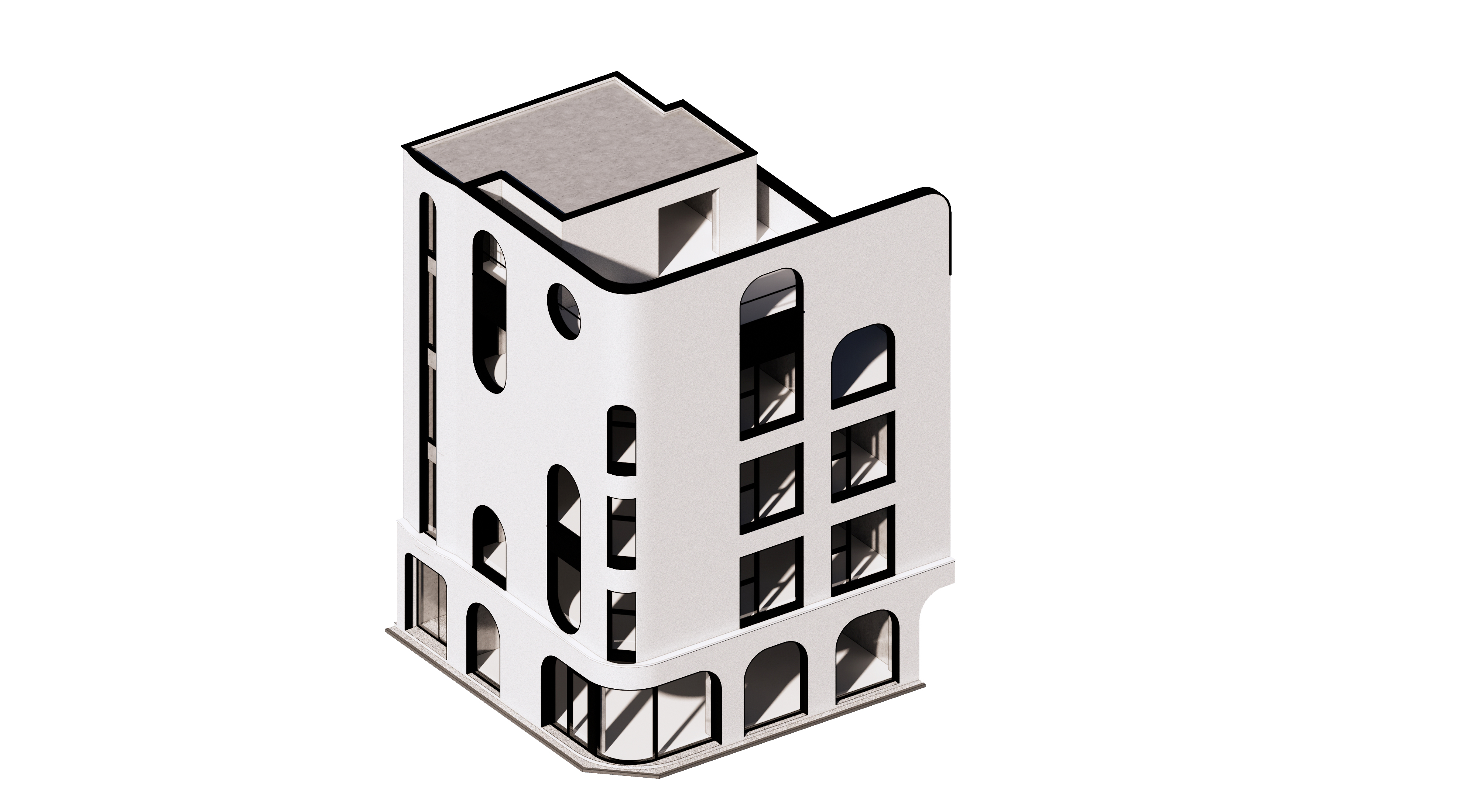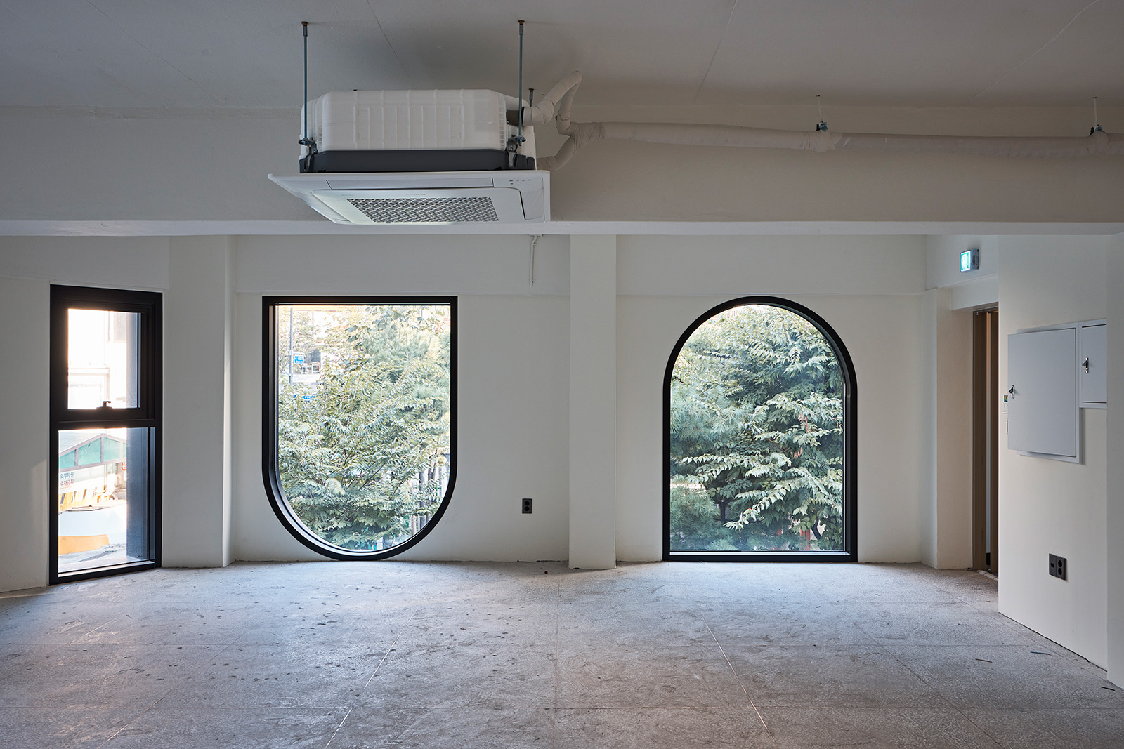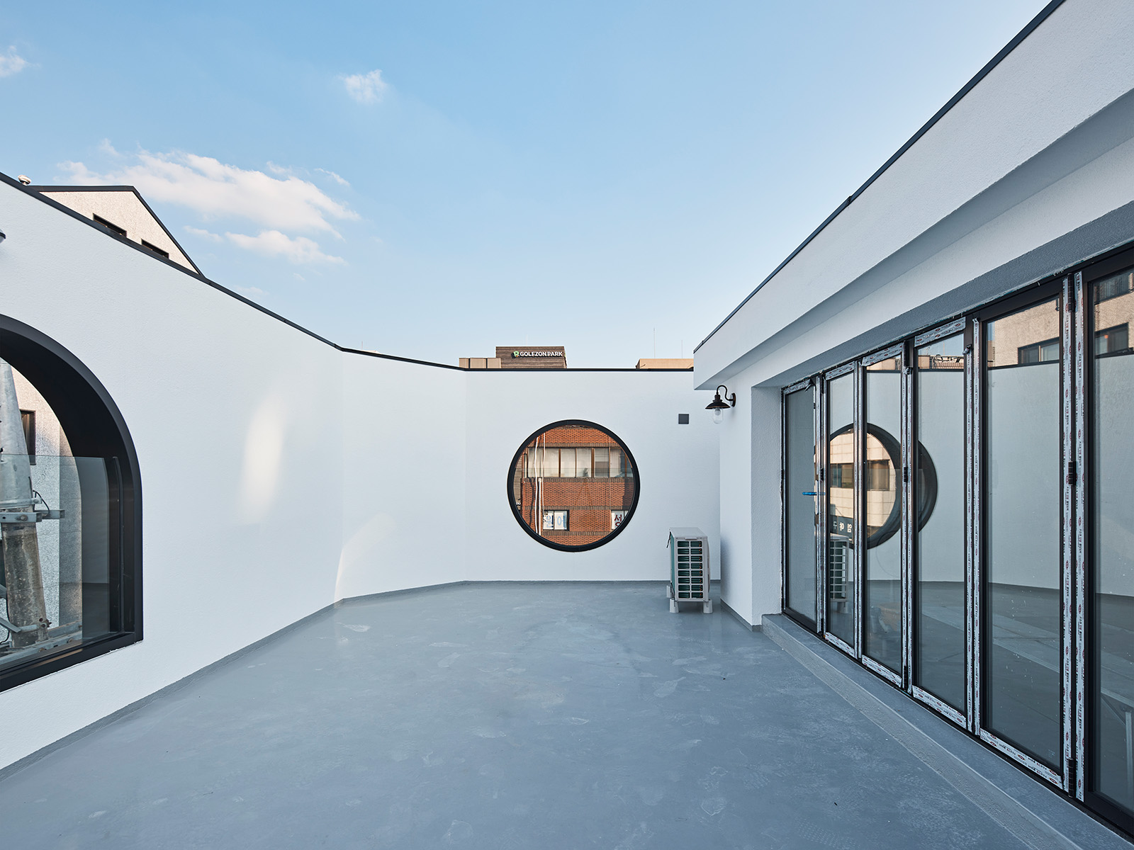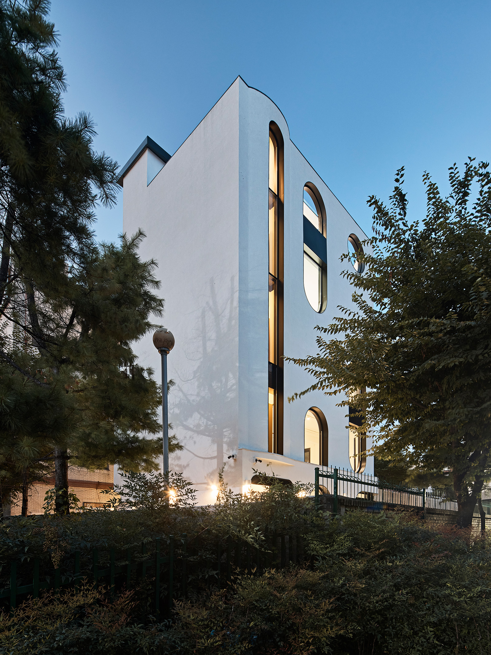 An idea strongly proposed by the client at the beginning of the design process was the “arch.” While there was a desire to incorporate arched windows on all facades, it was challenging to reflect the different characters of each side solely with arches. Therefore, to make each facade appear distinct, a combination of arches and rectangles was employed to attempt various expressions. Rectangles provided a strong structure and stability, while curves added a flexible and organic aesthetic sense. The main southern facade utilized arches in a high proportion to emphasize contrast with other buildings along the main avenue, maximizing the building’s visibility. The eastern side, which adjoins both the school and the end of the residential street, mainly used rectangular windows to harmonize with the residential street’s buildings, applying arches only to the upper parts to give a subtle highlight. In this way, the different appearances of each facade give the building a three-dimensional character that could otherwise be monotonous, thereby injecting vitality into the city.