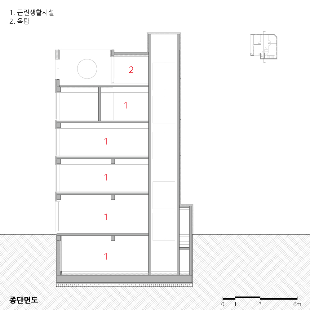 Small Office Renovation in Seoul Architect | Ahn, Jaegeun _ Seamless Architecture Client | Anyclo Construction | Weesung Construction Location | Songpa-gu, Seoul, Korea Program | Neighborhood living facilities Site area | 177㎡ Building area | 97㎡ Gross floor area | 451㎡ Building to land ratio | 55% Floor area ratio | 184% Building scope | 5F Structure | RC, Masonry Finishing | Sto Design period | 3 months Construction period | 4 months Photograph | Lee, Namsun |