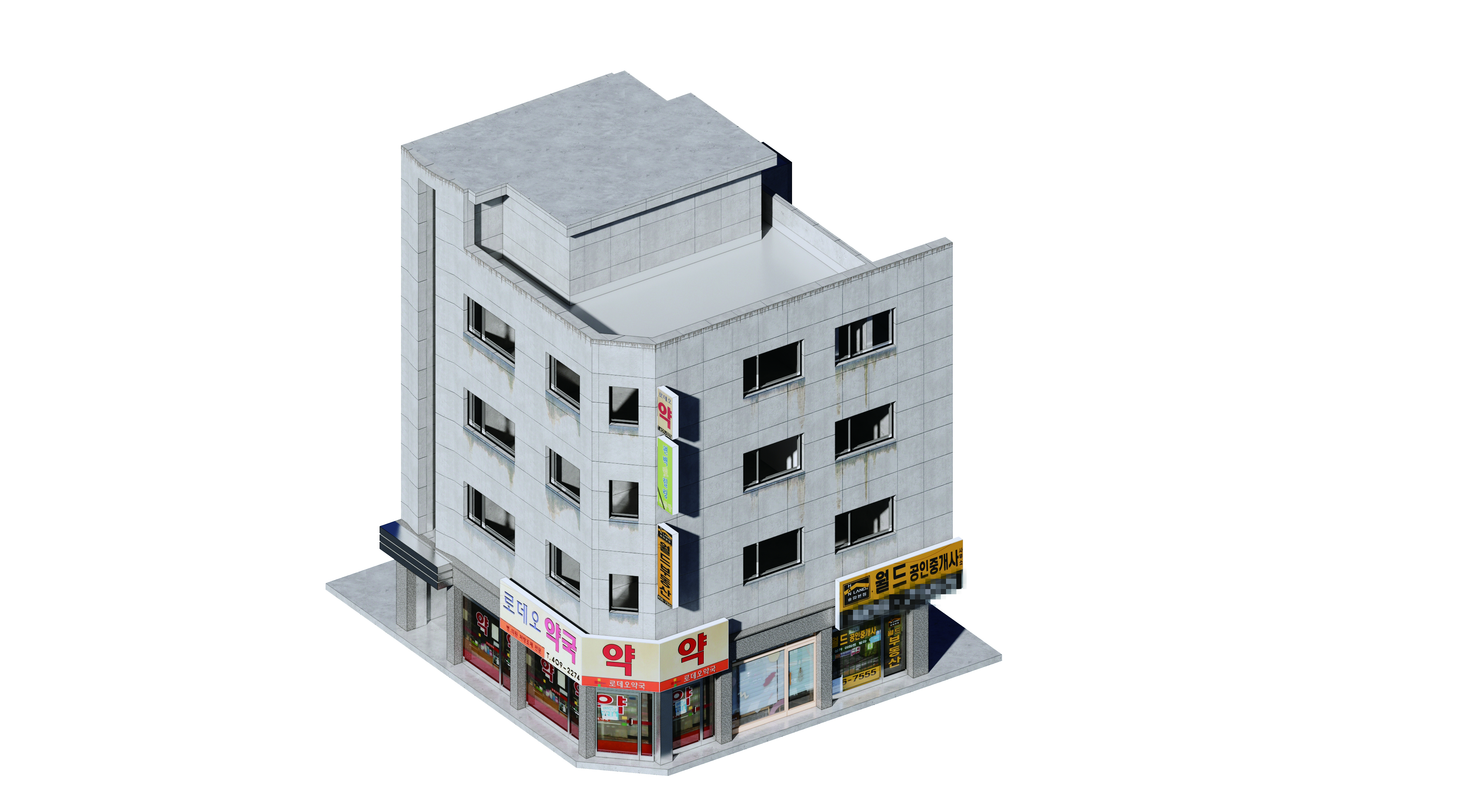 노후화된 해당 건물에 보존해야 할 요소는 많지 않았다. 결국, 기존의 뼈대와 전체적인 스케일감은 어느 정도 유지한 채 새로운 옷을 입히는 방향으로 결정했다. 이 건물의 가장 큰 특징 중 하나는 입면의 4부분이 모두 서로 다른 프로그램과 관계를 맺고 있다는 것이다. 가장 메인인 남측은 로데오중심가로와 면해 있고, 동측은 학교와 생활가와, 서측은 인근 아파트 단지와, 북측은 인근 다가구 건물과 마주하고 있다. 주재료나 형태는 동일하게 매스감을 가지되, 각각의 입면은 서로 다른 얼굴을 갖기를 원했다. 그로 인해 이 건물이 갖고 있는 위치적 특성을 입체적으로 표현하고자 했다.