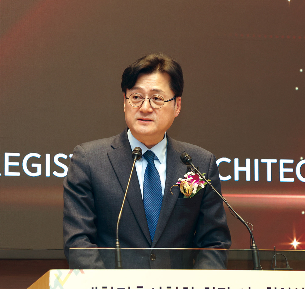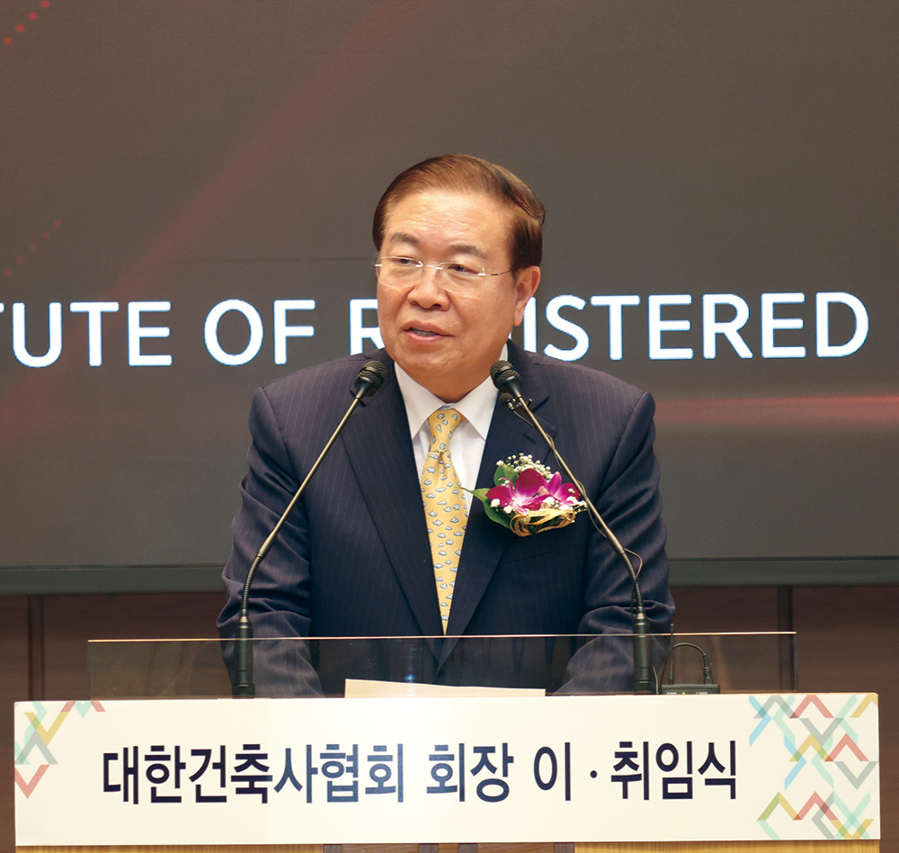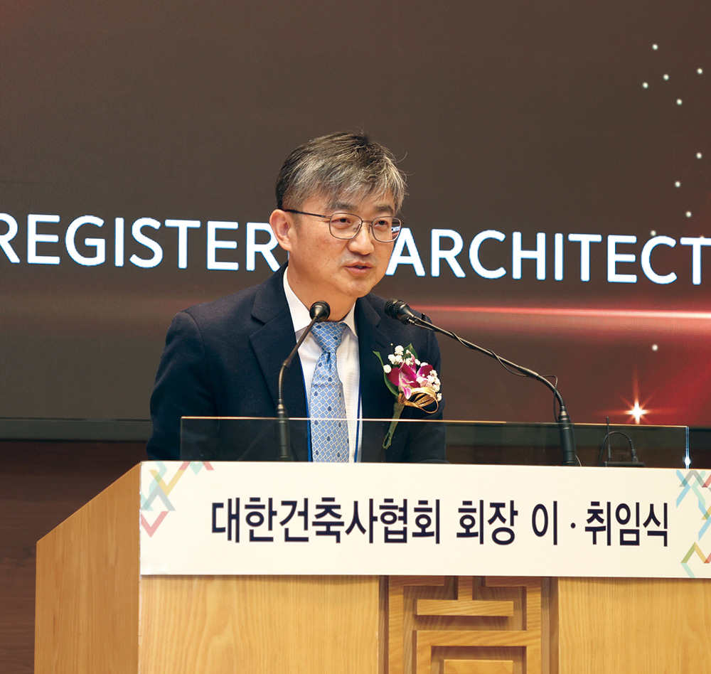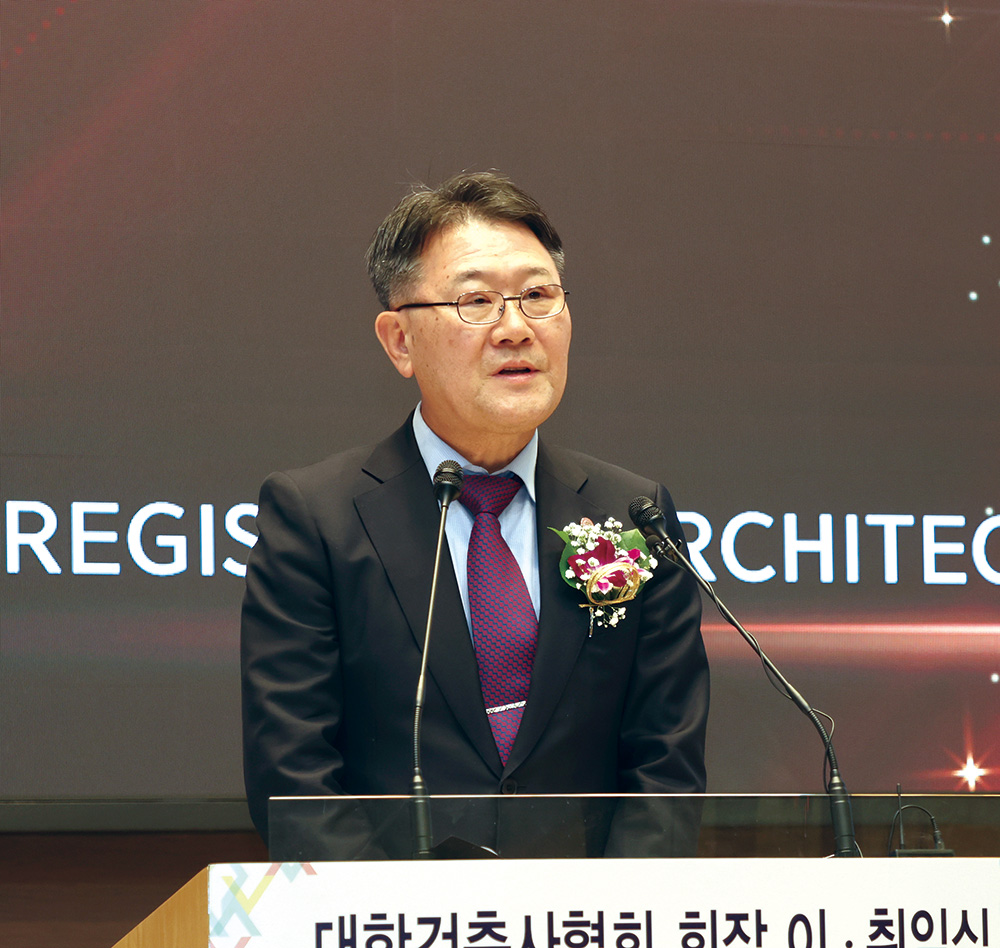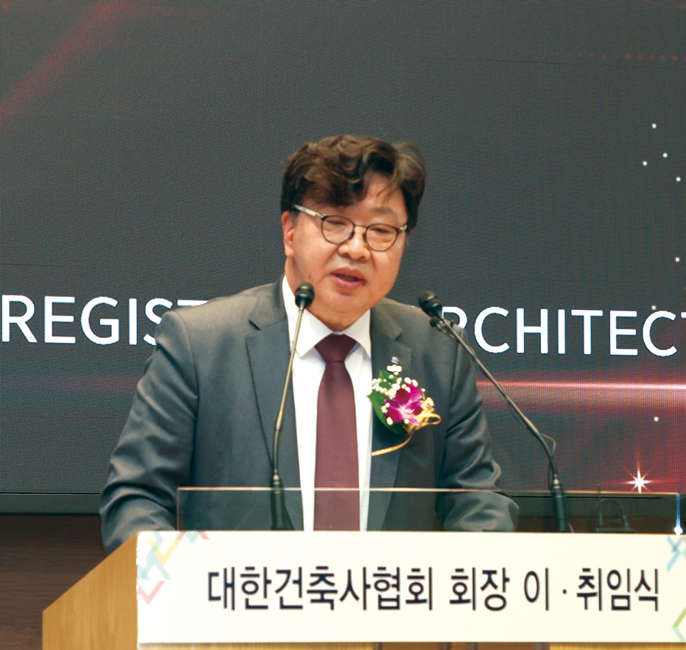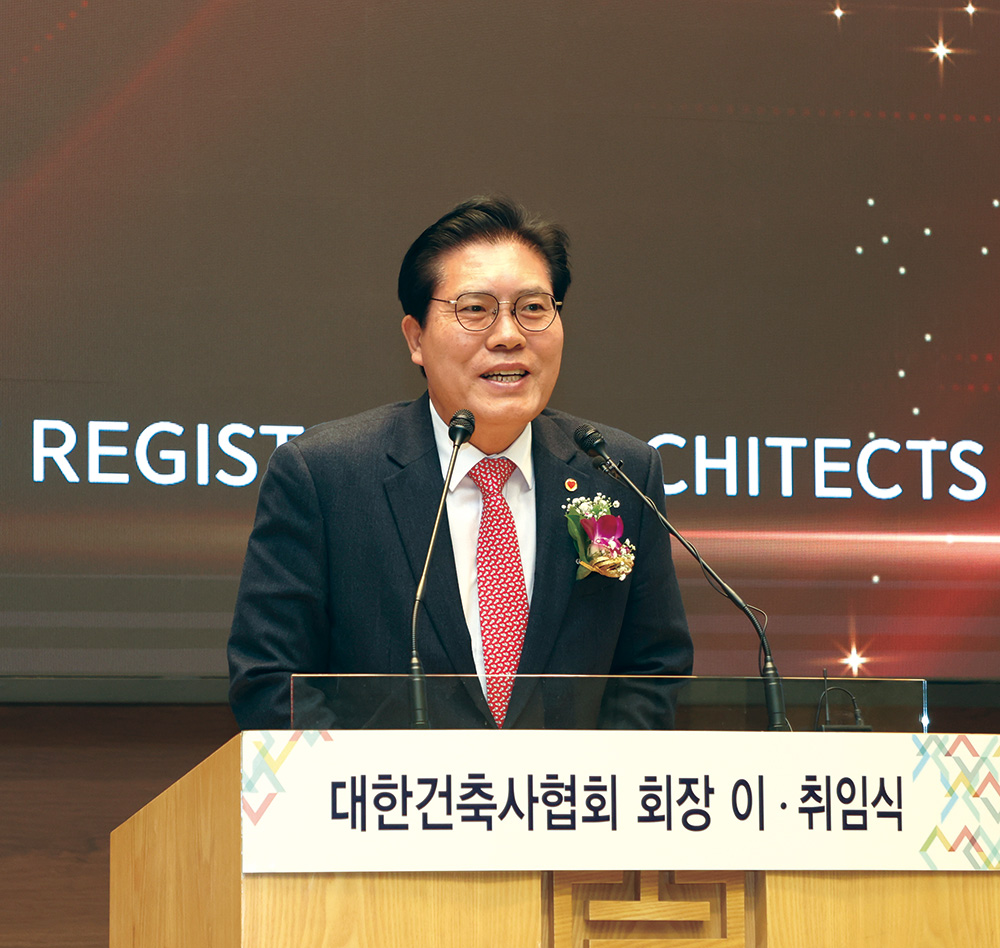 한편, 지난 6년간 협회의 발전과 회원 권익증대를 위해 헌신한 석정훈 전임회장은 백범 김구 선생의 ‘나의 소원’을 인용하며 “내 소원은 건축사 의무가입 시대의 완성이며, 그다음 소원도 건축사 의무가입의 완성이라 할 것이오, 세 번째 소원 역시 우리 모두 건축사답게 살아갈 수 있도록 의무가입의 완성이라고 대답할 것이오”라며 임기 내 역점 사업이기도 했던 건축사 의무가입을 통해 직업적 존엄성을 유지하며 살아갈 수 있는 환경 조성의 중요성을 강조했다.