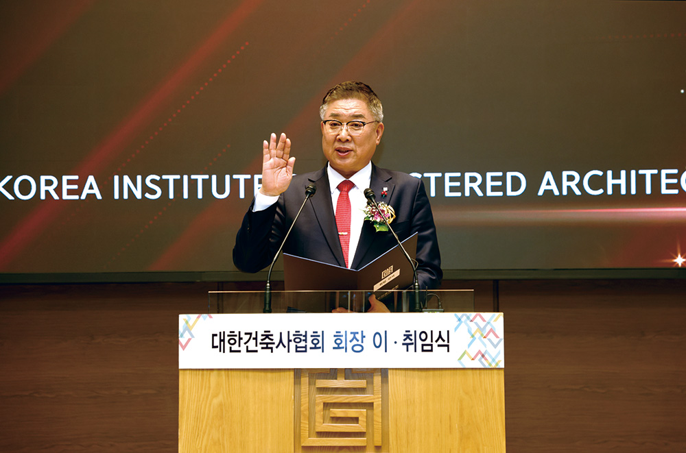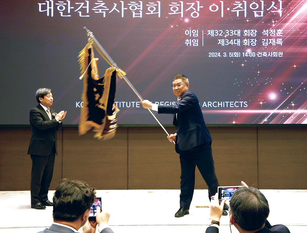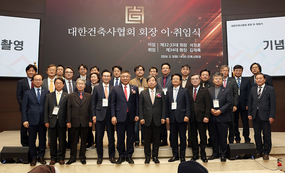 지난 3월 5일, 건축사회관에서 대한건축사협회 제32·33대-제34대 회장 이·취임식이 열렸다.