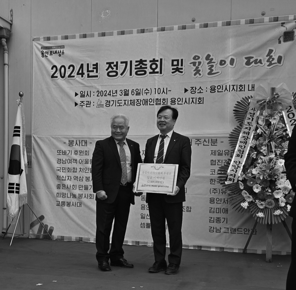 경기도건축사회 용인지역건축사회는 3월 6일 ‘경기지제장애인협회 용인시지회 정기총회’에 참석해 후원금을 전달했다. 이날 정기총회에는 경기도건축사회 정내수 전 회장과 용인지역건축사회 김종기 전 회장도 함께 참석했다. 용인지역건축사회는 해마다 경기지체장애인협회 용인시지회에 후원해 오고 있다.