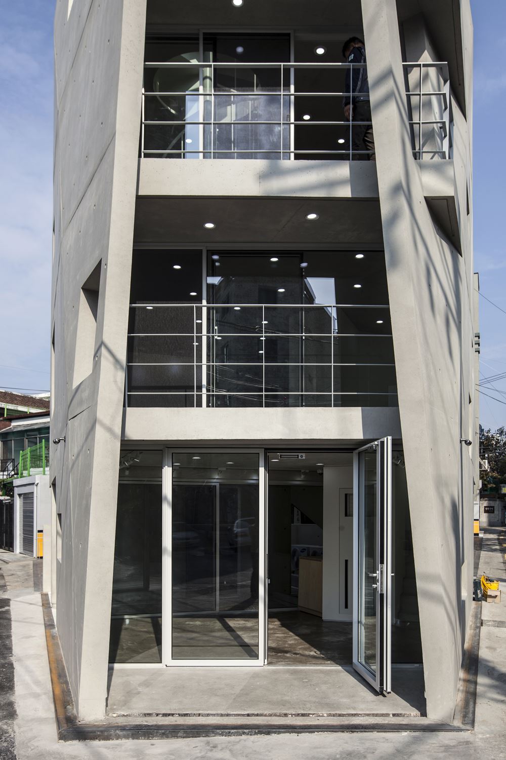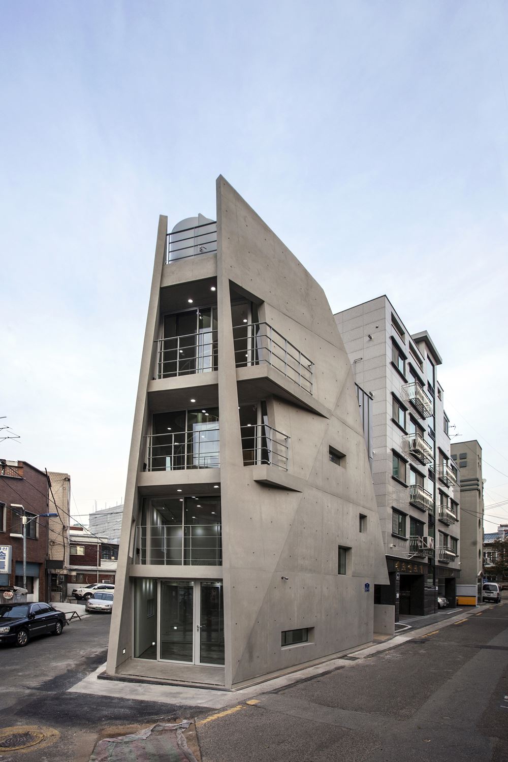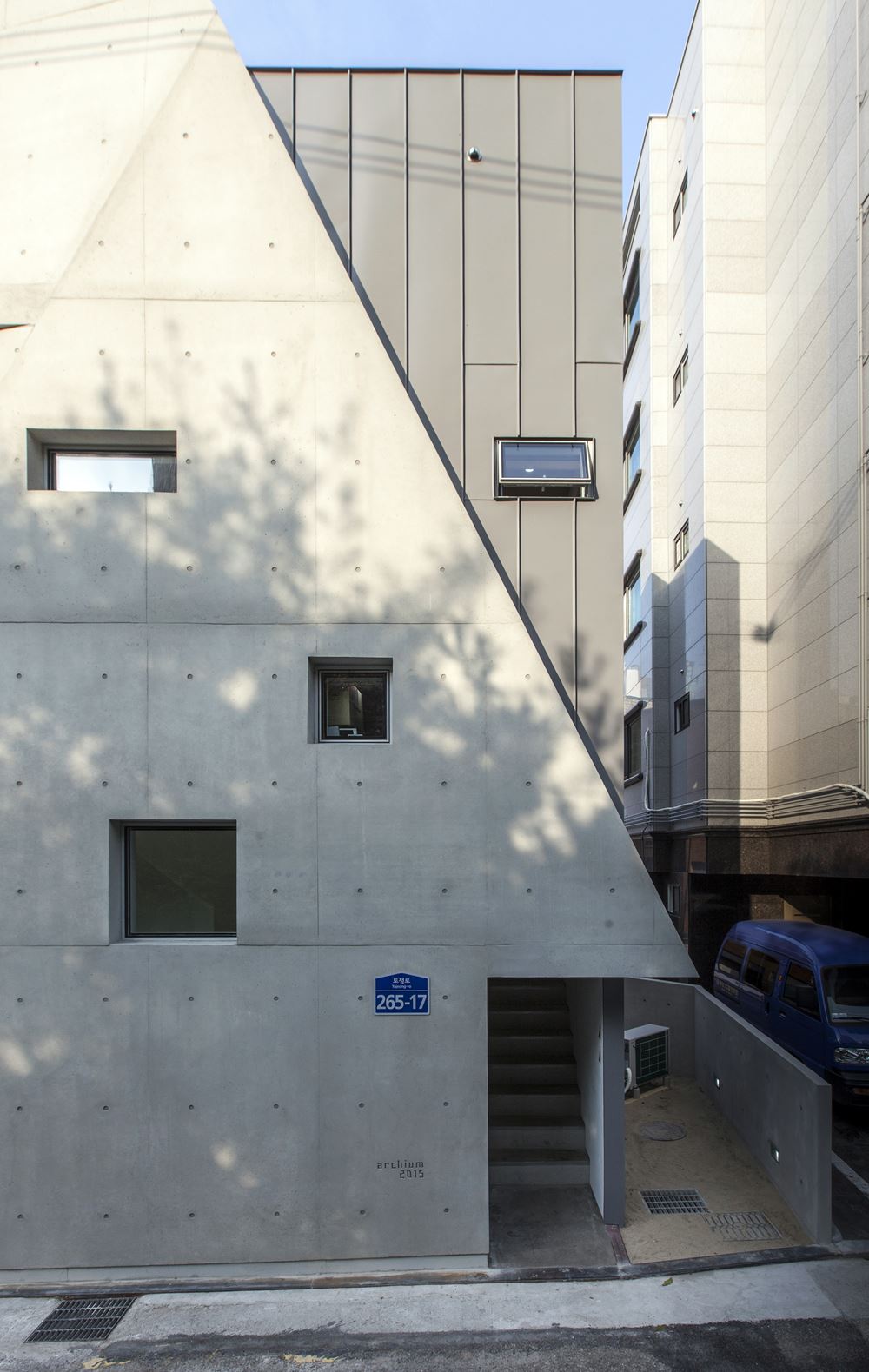 | 자투리움 대지위치 서울시 마포구 용강동 493-3 용도 단독주택 및 문화및집회시설(전시장) 대지면적 73㎡(가각전제 적용 후 67.88㎡) 건축면적 40.67㎡ 연면적 116.63㎡ 건폐율 59.91% 용적률 171.82% 규모 지상 4층 구조 철근콘크리트조 외부마감 노출콘크리트, ZINC패널, T24 low-e 복층유리 내부마감 노출콘크리트, 석고보드 위 도장 설계기간 2014. 10 ~ 2015. 06 시공기간 2015. 06 ~ 2015. 10 사진작가 전명진 |