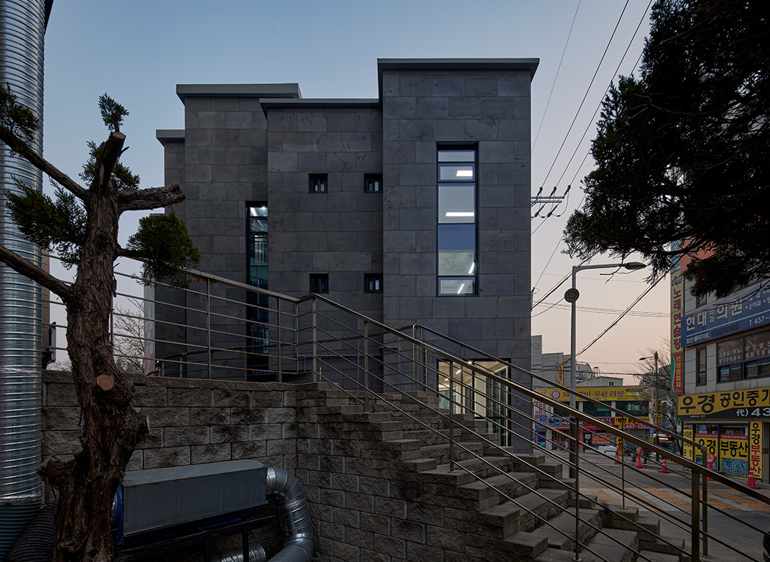 Banwol Retail Building Architect | Lee, Myungrae _ Studio JM Architects Client | Cheongju Han family Supervisor | Didim Architects Construction | Cheongju Han’s Family Group Project team | Lee, Yongmin / Kim, Mihee / Kim, Hongjung Design intention realization | Studio JM Architects Location | Geongeon-ro 119-5, Sangnok-gu, Ansan, Gyeonggi-do, Korea Program | Neighborhood Facility(Retail and Office) Site area | 240.00㎡ Building area | 116.26㎡ Gross floor area | 329.04㎡ Building to land ratio | 48.44% Floor area ratio | 137.10% Building scope | 3F Structure | RC Exterior finishing | THK30 Basalt, THK24 Low-E Double Glass Interior finishing | THK3 Vinly Tile(Floor), Painting(Wall), Exposed Ceiling(Ceiling) Design period | 2021. 12 - 2022. 06 Construction period | 2022. 08 - 2023. 03 Photograph | Kim, Hanbit Structural engineer | Bansuk Structural Engineering Mechanical·Electrical·Fire engineer | Jungchan Enginering, Co. |