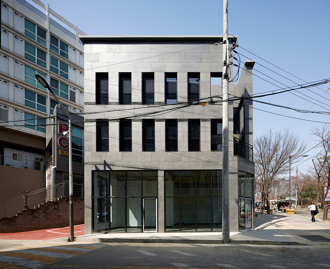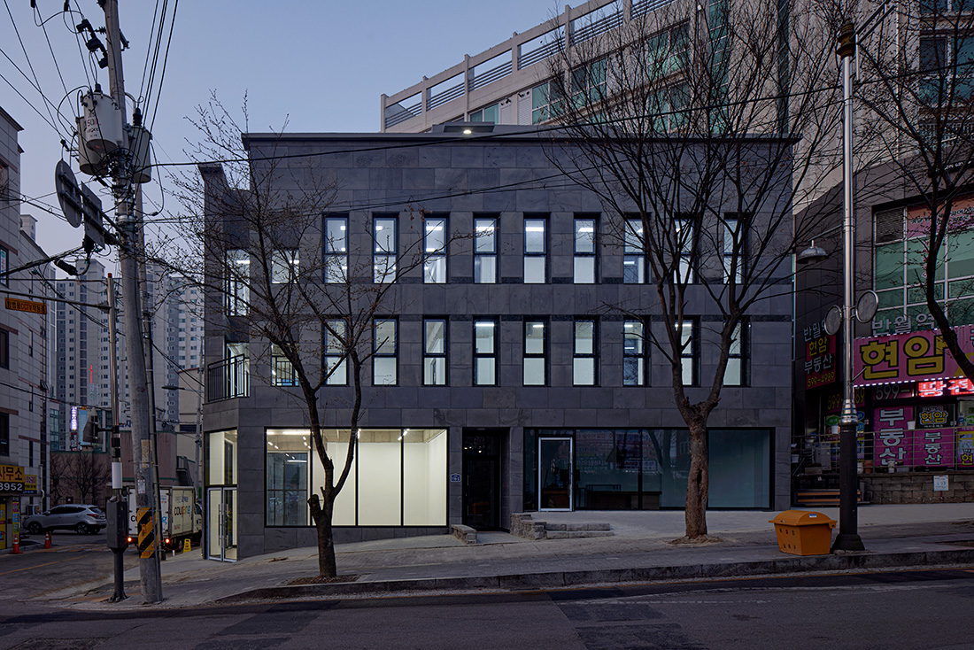 Banwol Retail Building Architect | Lee, Myungrae _ Studio JM Architects Client | Cheongju Han family Supervisor | Didim Architects Construction | Cheongju Han’s Family Group Project team | Lee, Yongmin / Kim, Mihee / Kim, Hongjung Design intention realization | Studio JM Architects Location | Geongeon-ro 119-5, Sangnok-gu, Ansan, Gyeonggi-do, Korea Program | Neighborhood Facility(Retail and Office) Site area | 240.00㎡ Building area | 116.26㎡ Gross floor area | 329.04㎡ Building to land ratio | 48.44% Floor area ratio | 137.10% Building scope | 3F Structure | RC Exterior finishing | THK30 Basalt, THK24 Low-E Double Glass Interior finishing | THK3 Vinly Tile(Floor), Painting(Wall), Exposed Ceiling(Ceiling) Design period | 2021. 12 - 2022. 06 Construction period | 2022. 08 - 2023. 03 Photograph | Kim, Hanbit Structural engineer | Bansuk Structural Engineering Mechanical·Electrical·Fire engineer | Jungchan Enginering, Co. |