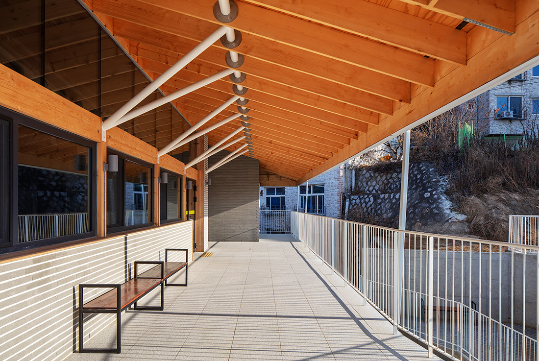 To transcend the spatial limitations imposed by the maximum 6 meter length of the lightweight timber members, the use of standard joints was necessary. Lightweight steel, a material easily available and commonly used in contemporary Korea, was chosen to complement the timber structure. The combination of lightweight steel and timber not only fulfilled their structural roles but also explored potential synergies and the expansibility of the timber framework.