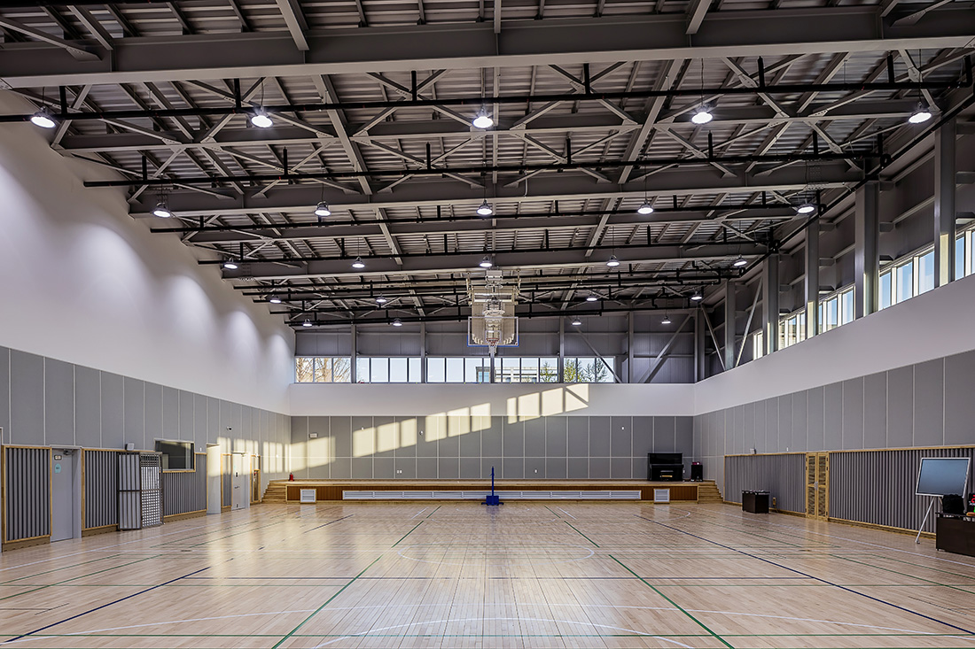 The Kindergarten, designed with a rectangular form to accommodate the upper gymnasium, incorporates a circular interior that contrasts with its massing form. Departing from the typical classroom arrangement, it employs curves to shape the indoor space. Common areas, delineated by spaces between half-circle-shaped classrooms, serve not only as corridors but also as play areas and meeting spaces. This design approach stimulates children’s creativity and curiosity with its distinctive shapes.