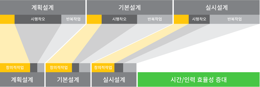건축설계는 때로는 인과관계로만 설명할 수 없는 미틱 컨디션(mythic condition)이 분명 존재한다. 이는 어떠한 두 개의 건축설계도 같을 수 없는 건축설계의 특수성을 설명한다. 그럼에도 불구하고 우리가 건축설계의 디자인 프로세스와 지식을 구조화해야 하는 이유는, 역설적으로 이러한 건축사의 디자인에 대한 의지를 보다 강화하기 위함이다. 마치 그리드가 창조적 자유로움을 무작정 제한하기보다, 효율적인 창조를 위한 좋은 도구가 되는 것에 비유할 수 있겠다.<그림 5>