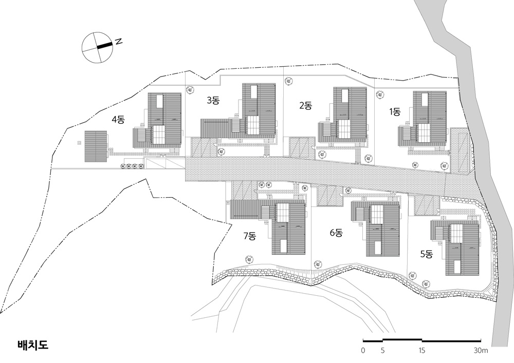 개별필지로 건축되어 제각기 다른 경관을 구성하지 않도록 단지구성 전반에 모든 건축주들이 협의를 통해 공간구성, 규모설정, 공법 및 공사비 결정, 시공사 선정, 자재선정 등을 함께 결정했다. 이 과정에서 단지구성으로 ‘같이’ 할 것과 개별 특성을 살릴 것을 구분했다.