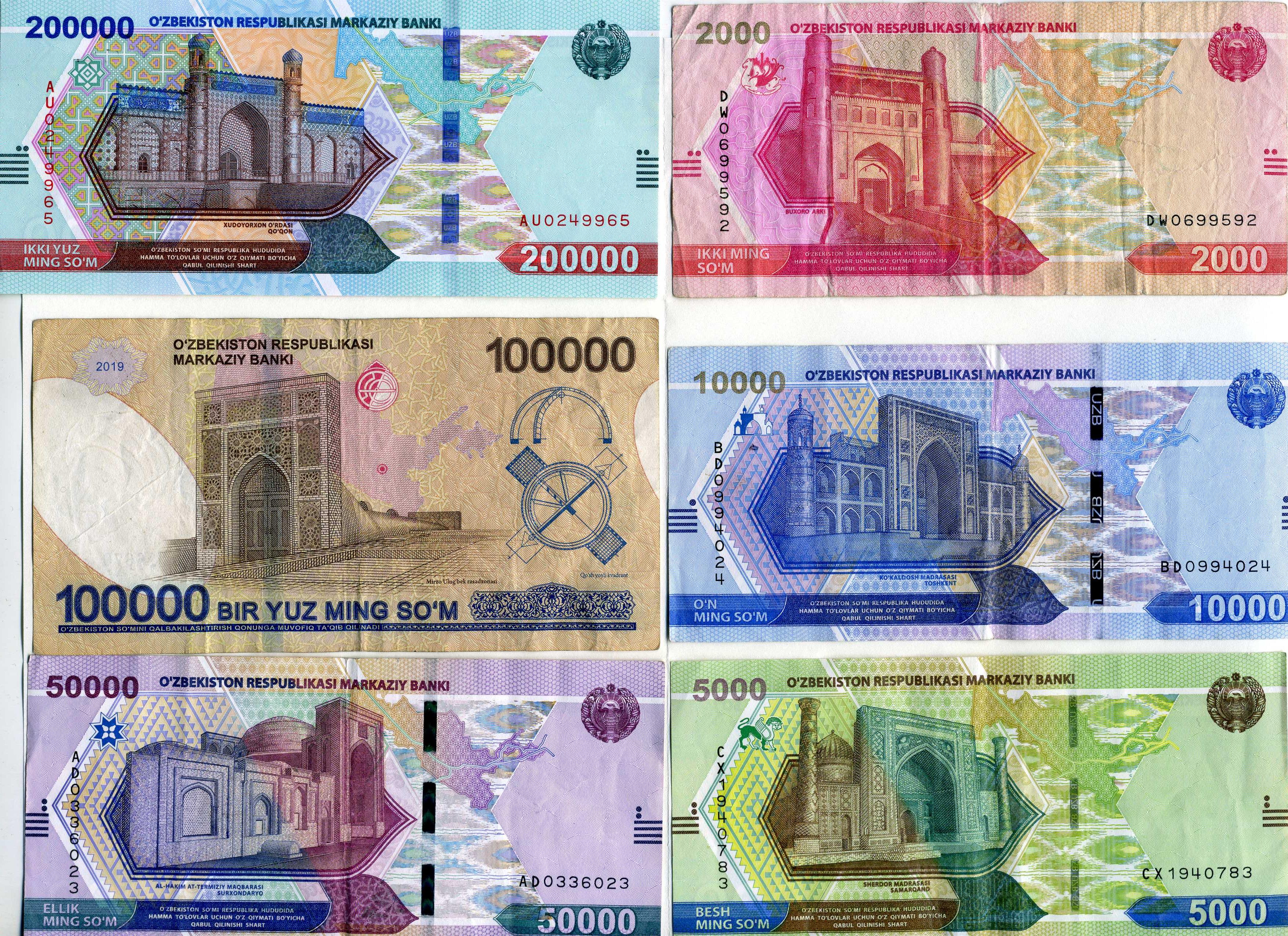 우즈베키스탄 숨 (Uzbekistani Som, 2021~2022 series) : 우즈베키스탄의 지폐는 건축유산을 모티브로 하고 있다.