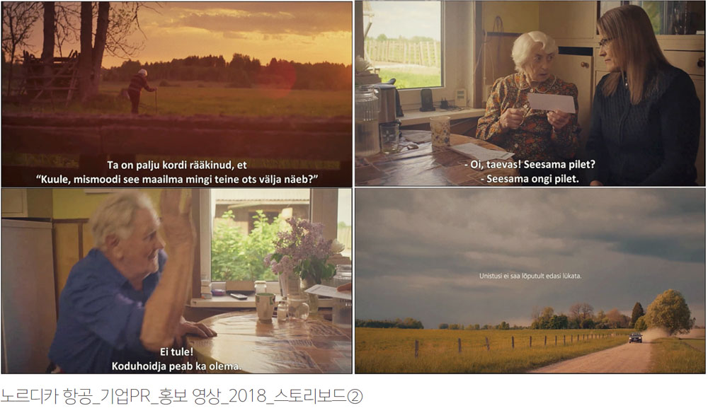 지난 6월 북유럽 에스토니아의 『노르디카』(Nordica)라는 항공사가 마이무 칼라(Maimu Kala) 라는 95살 할머니를 주인공으로 홍보 영상을 만들어 선보였다. 그녀는 아흔 다섯 해를 사는 동 안 한 번도 고향을 떠나본 적이 없다. 세상의 다른 쪽에 뭐가 있을까 궁금해 하는 어린 마이무 에게 그녀의 엄마는 ‘여기도 보고 들을 것이 충분해. 일하러 가자!’고 말하곤 했다.