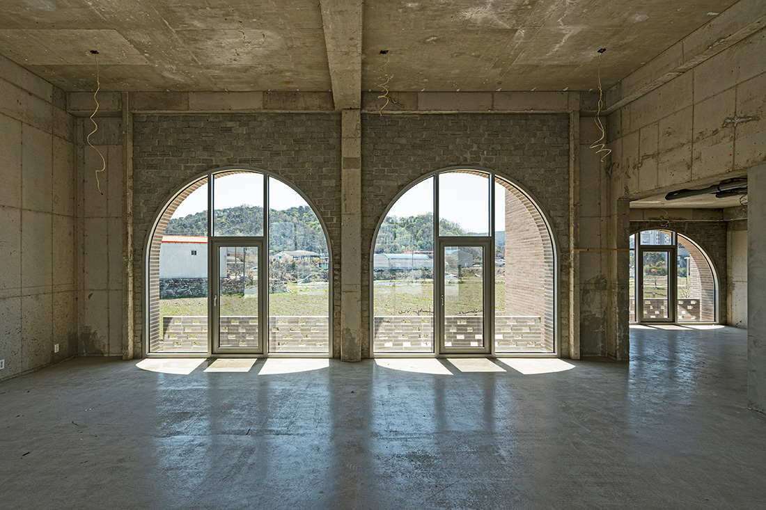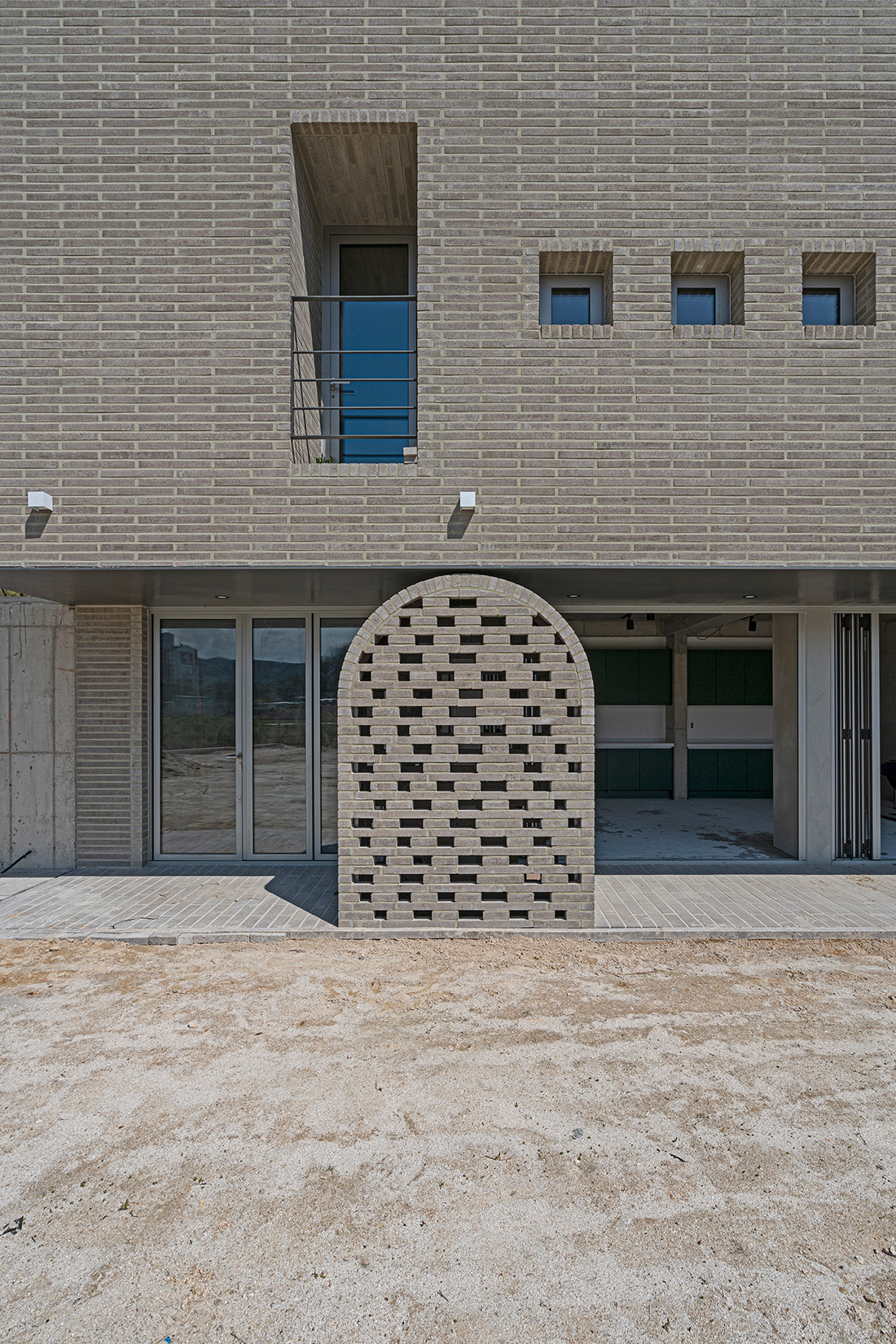 여러 용도와 평면으로 이루어진 건물은 다양한 구법과 단일 재료로 지어졌다. 작은 육면체인 최초의 단위가 점으로, 점이 선으로, 선이 면을 이루어가는 조적 건물은 쌓기 방식의 변화로 시각적 효과와 질감을 다양화할 수 있다. 줄눈의 색과 마감 방식 차이에 따라 여러집 벽은 지면에 가까운 곳에서 가장 거칠고 상부로 갈수록 매끄러워진다. 분절된 벽면에는 세 종류 색의 줄눈이 번갈아 적용되어 건물 전체를 이루는 각각의 동이 미묘한 채도 차이를 보인다. 건물과 지면이 만나는 방식으로서 아치는 매우 중요한데, 전통적으로 조적 건물의 하중을 지면에 전달하는 요소가 이곳에서는 콘크리트 구조체 위 치장벽돌로 구현됐다. 건물 입면 곳곳에서 형태와 역할을 달리하며 등장하는 아치는 그 형태와 기능 사이 관계가 의도적으로 뒤틀리고 왜곡되어 건물 전체의 인상을 완성한다.