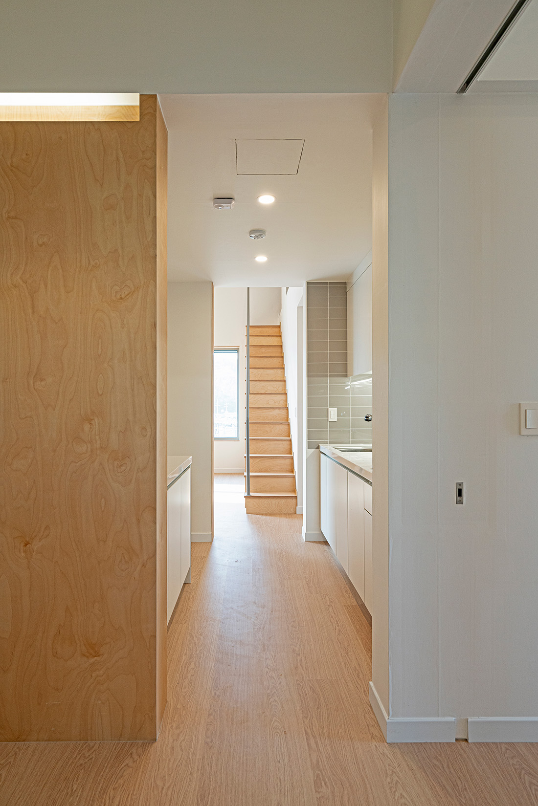 여러집의 주호 평면은 총 다섯 종류로, 물 쓰는 공간의 위치에 따라 주변부형과 중심부형으로 구분된다. 첫 번째 유형은 주생활 공간이 중심에서 보호받고, 가사노동 공간과 그 사이사이 다양한 양태의 머물 자리가 경계부에 놓인다. 평면 경계 곳곳에는 적절한 개구부가 확보되어 서비스 공간과 머물 공간은 물론 그 너머 중심 공간을 향해 연하고 순한 빛을 들여온다. 두꺼운 경계를 두른 집의 안과 밖 사이에는 안정적인 심리적 거리가 확보되어 거주자로 하여금 집 안의 정서와 공기를 자유롭게 향유하도록 한다. 주변부형은 특정 사용자나 구체적인 삶의 모습을 고려해 계획하는 것이 적합한데, 이는 주변부에 파생하는 여유 공간을 향유할 주체의 특수한 요구사항과 실질적인 필요를 반영할 수 있기 때문이다. 두 번째 중심부형 평면은 주방과 화장실 등 물 쓰는 공간이 한데 모여 평면 한가운데에 섬처럼 놓이고, 그 주변에 회유 공간이 파생한다. 임대세대에 일괄적으로 적용된 이 유형은 주변 영역을 구분하고 성격을 부여해 비교적 작은 면적의 임대세대 내부 공간을 최대한 다양하게 활용할 수 있게 한다. 서비스 공간 주변을 동그랗게 회유하는 동선은 집 안에서 밖으로 시선을 확장하며, 바닥에서 천장면까지 열리는 개구부를 통해 바깥 풍경을 실내 곳곳으로 들인다.