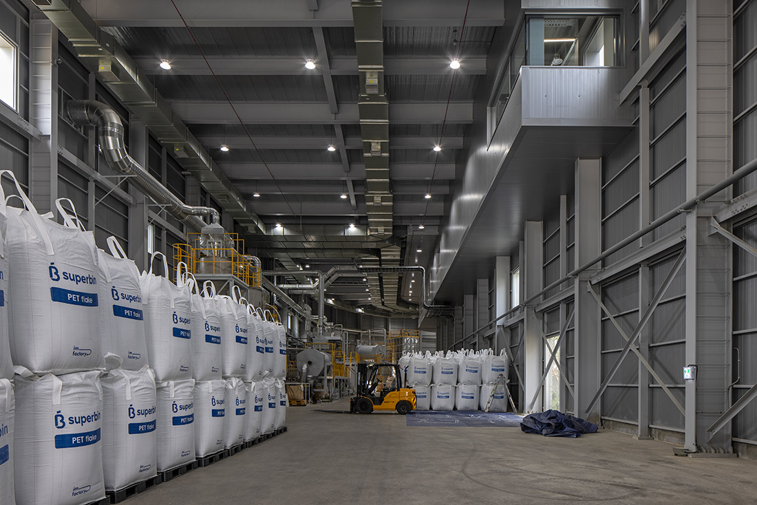 기본적인 폐기물 공장의 기능을 수행하기 위해 기계설비가 들어갈 대공간의 확보가 필요했다. 수집된 PET는 약 150미터 길이로 특수 제작, 배치된 기계들에 의해 전처리-분쇄-세척-건조-선별 공정을 거쳐 정화된 제품 플레이크가 된다. 9,886제곱미터 너비의 제약된 대지 안에 기계 배치를 위한 최소 15미터 너비와 150미터 길이의 공간을 확보하기 위해 U자 형태의 건물을 배치했다. 공정을 따라 일반적인 一자 건물이 아닌 U자의 배치는 새로운 기능을 더 효율적으로 수용할 수 있는, 전에 없던 새로운 건물이 되었다. 긴 작업 공간으로 1개 층에 안정적으로 기계가 가능하고, U자의 윗면으로 차량의 동선이 정리되었으며, U자의 안쪽으로 사무·전시·문화 공간이 집중되어 한눈에 150미터가량의 공정을 쉽게 파악할 수 있는 명쾌한 건물이 되었다.