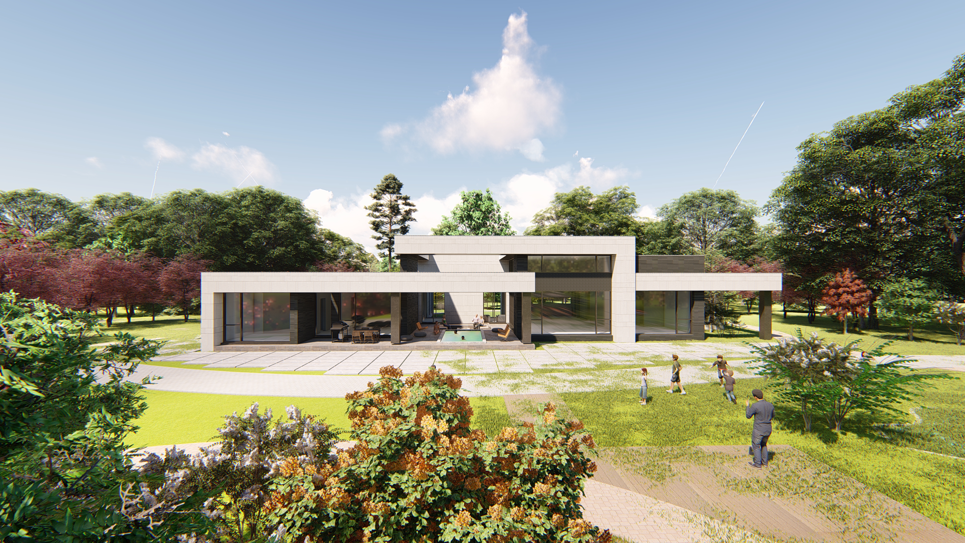 독립된 삶을 영위하던 각 가족이 모여 대가족이 함께 머무르는 주택 프로젝트를 소개하고자 합니다. 이 프로젝트의 핵심은 독립성과 공유 공간이 공존하는 공간 구조였습니다. 각 구성원의 생활 방식과 그들만의 소통 방식을 이해하는 데 많은 시간을 할애했습니다. 넓게 펼쳐진 단층 형태의 공간 구조에서 각 구성원의 형평성을 유지하면서 독립과 공유 공간의 위계를 만들어내고, 공간감의 변화를 통해 다양한 삶의 감정을 느낄 수 있도록 의도했습니다.