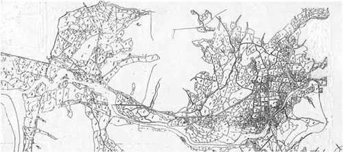 <철도부설이전과 이후의 신시가지와 구시가지 비교>