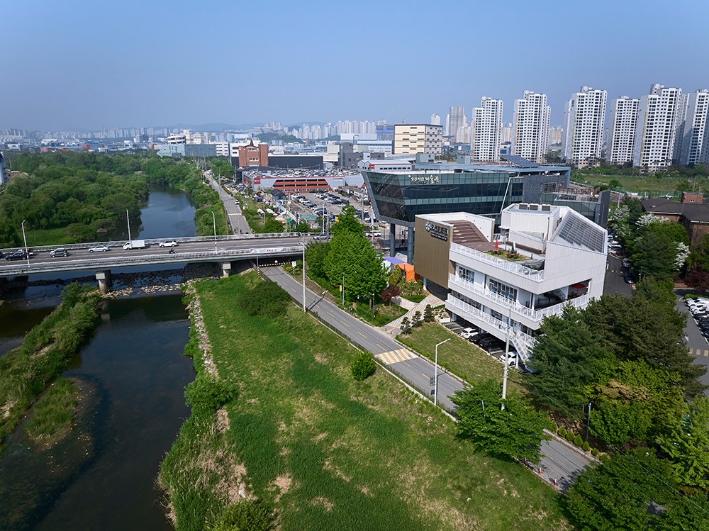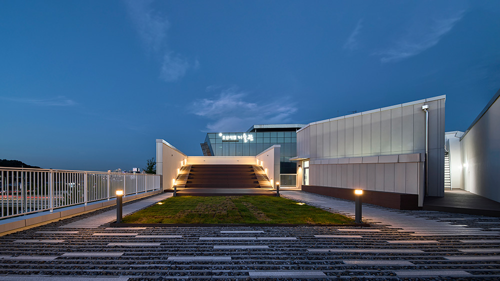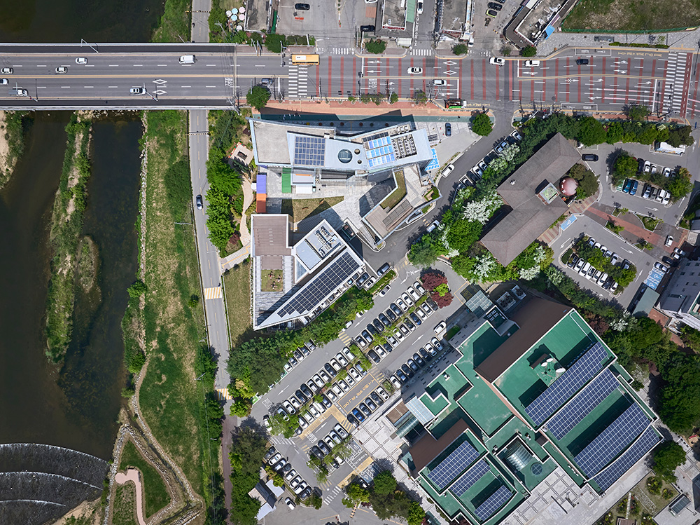 Furthermore, the building’s shape was designed to follow the contours of the site, optimizing internal spatial efficiency. Regularly shaped spaces meet at the acute angles of the triangle, creating irregular spaces and naturally securing open areas leading to the Osancheon Stream. This design maximizes the creation of external spaces along the stream.
