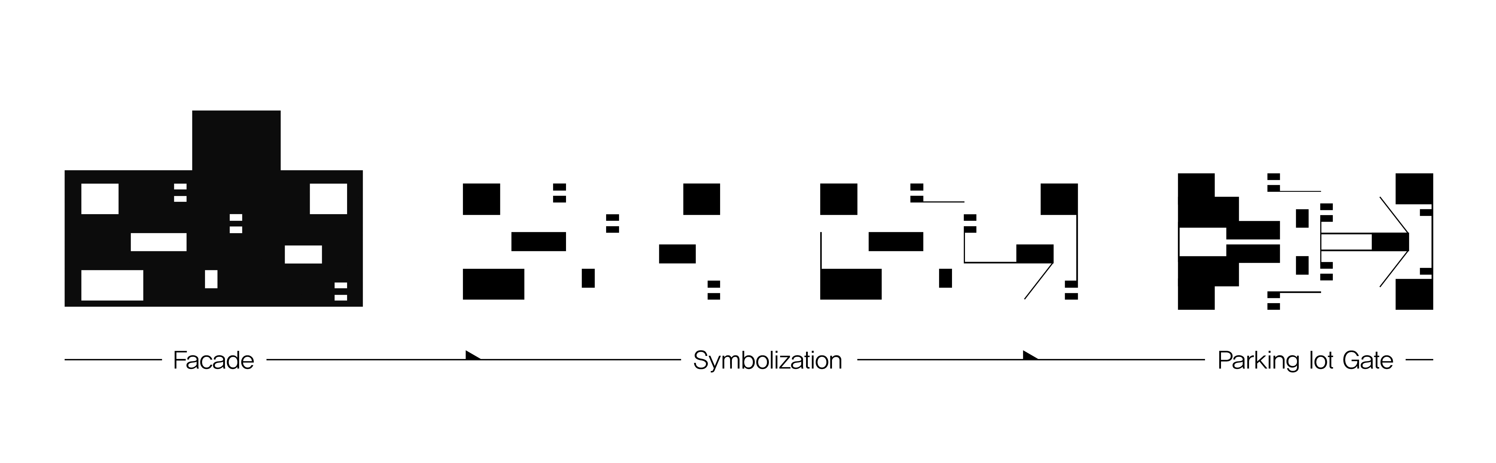 그래픽 디자이너인 건축주는 긴장감 있는 파사드 디자인을 원했다. 따라서 파사드의 전면 개구부는 불규칙적으로 보이지만 히든 모듈을 바탕으로 보이지 않는 규칙성으로 정리했다. 특히 스킵플로어에 의한 1미터의 레벨차는 1미터×0.5미터의 모듈을 적용해 엇갈림을 정리했다.