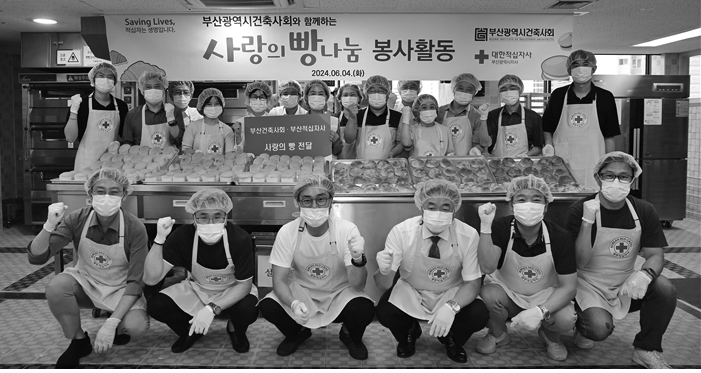 부산광역시건축사회가 대한적십자사부산지사와 함께 6월 4일 ‘사랑의 빵 전달’ 봉사활동을 실시했다.